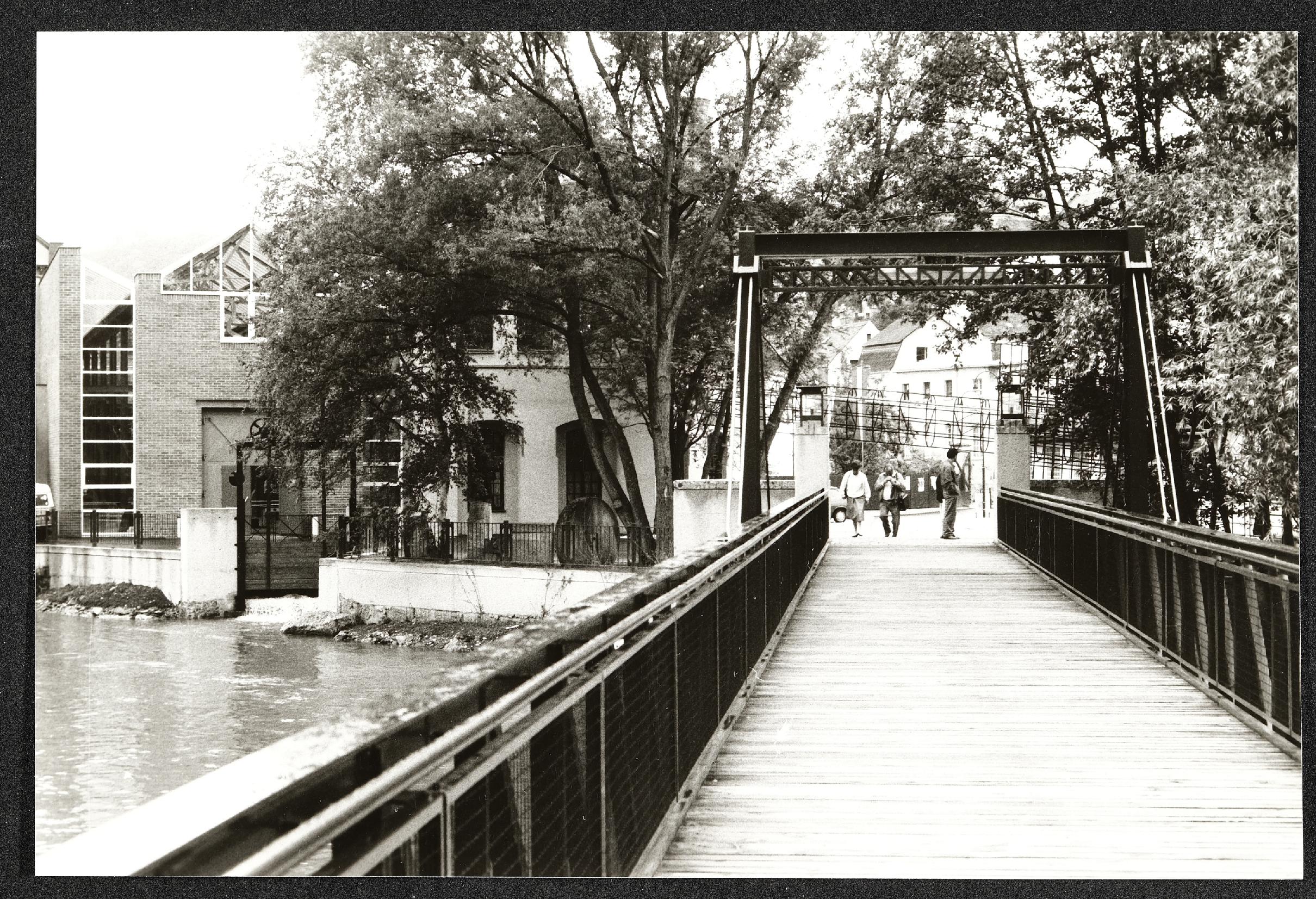 | Beschreibung | 1987 Landesausstellung "Arbeit Mensch Maschine: Der Weg in die Industriegesellschaft". Blick vom Steg zum Vorplatz des Museum Industrielle Arbeitswelt Steyr. |