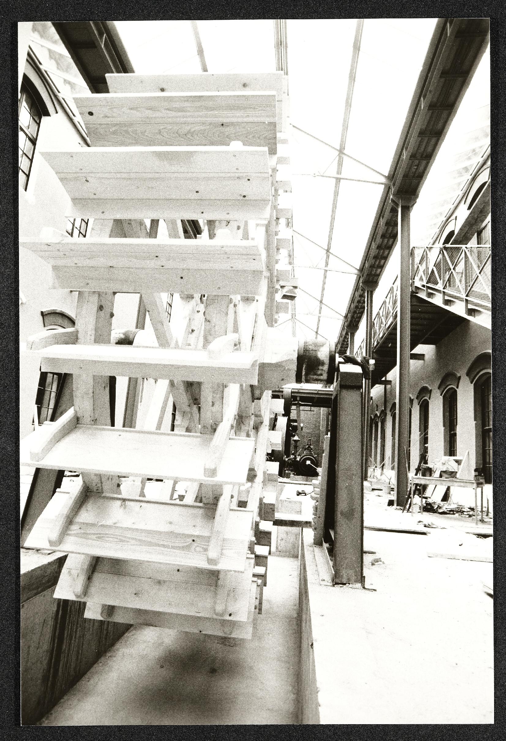 | Beschreibung | Aufgebautes Wasserrad für die Landesausstellung 1987 in der Mittelhalle des Museum Industrielle Arbeitswelt Steyr. |