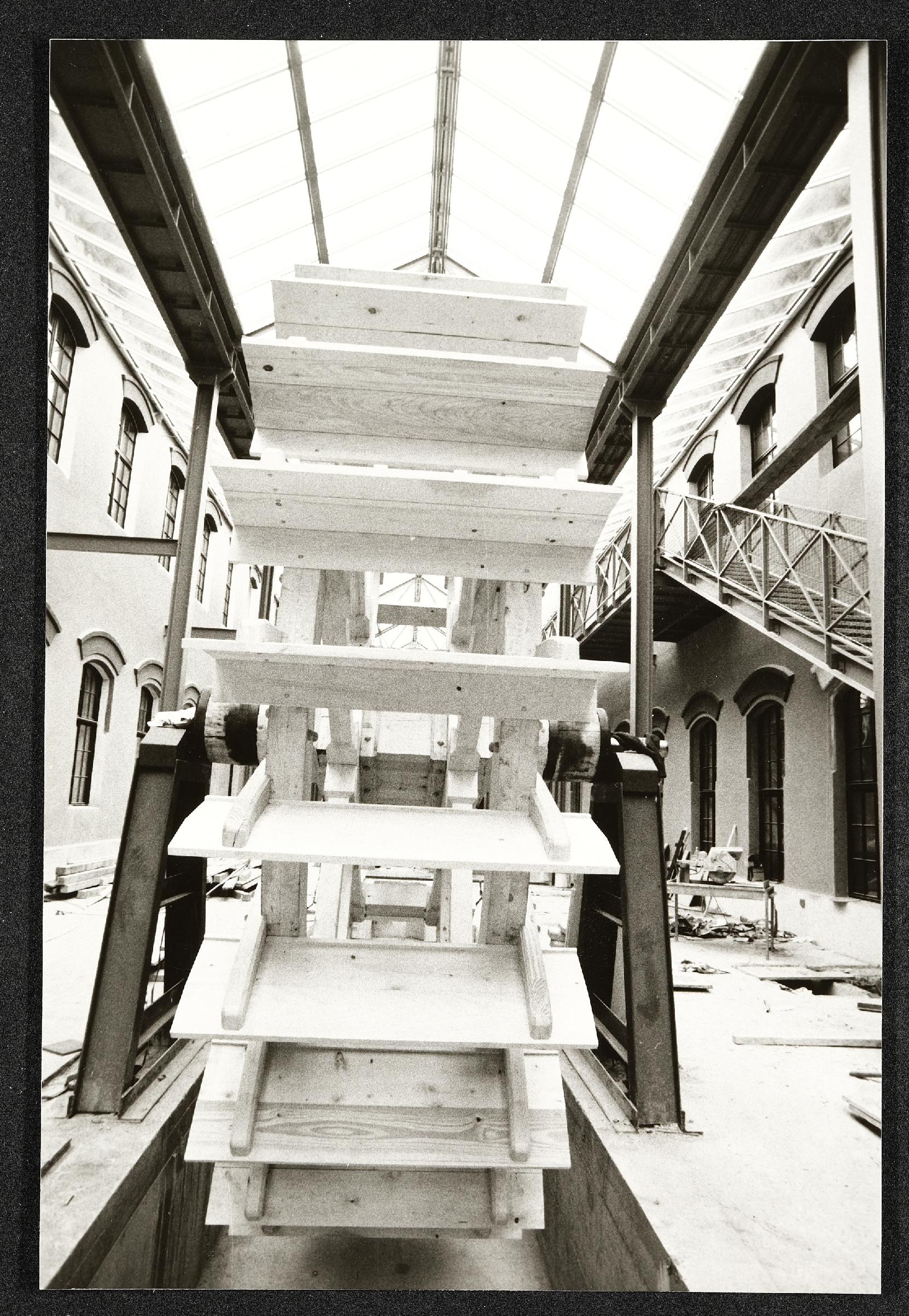 | Beschreibung | Aufgebautes Wasserrad für die Landesausstellung 1987 in der Mittelhalle des Museum Industrielle Arbeitswelt Steyr. |