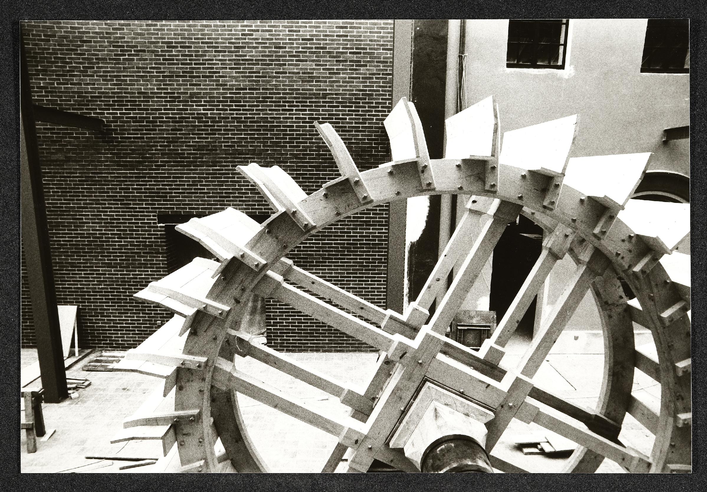 | Beschreibung | Detailaufnahme des aufgebauten Wasserrades für die Landesausstellung 1987 in der Mittelhalle des Museum Industrielle Arbeitswelt Steyr. |
