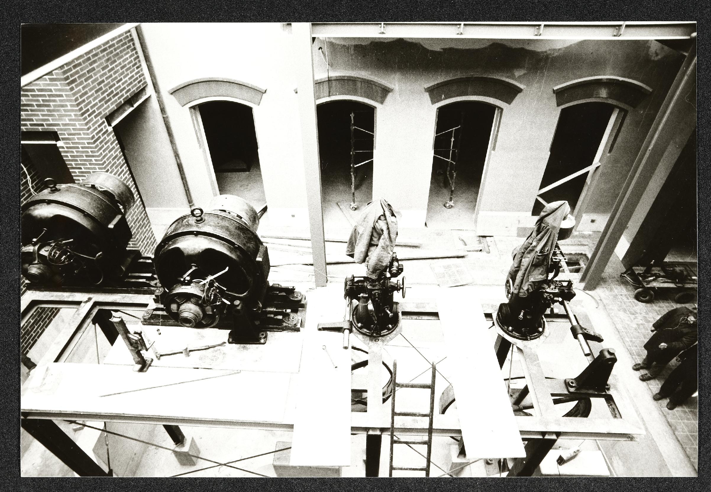 | Beschreibung | Aufbau des Objektes "Elektrizitätswerk" für die Landesausstellung 1987 in der Mittelhalle des Museum Industrielle Arbeitswelt Steyr. |