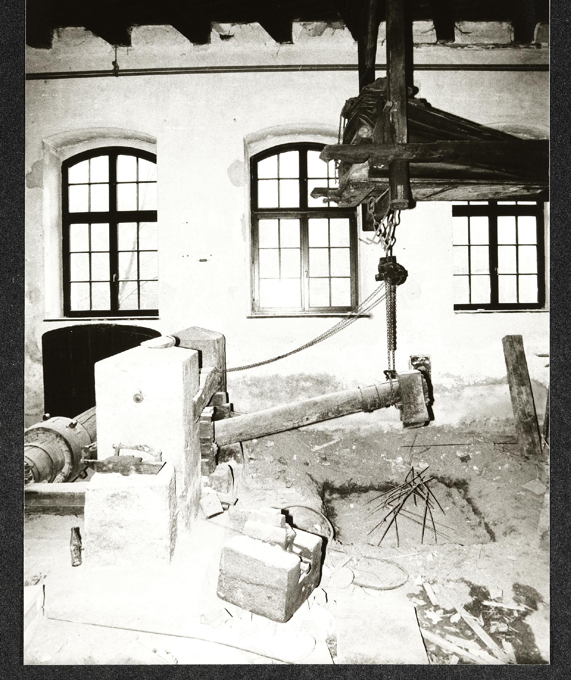 | Beschreibung | Aufbau des Objektes "Elektrizitätswerk" für die Landesausstellung 1987 in der Mittelhalle des Museum Industrielle Arbeitswelt Steyr. |
