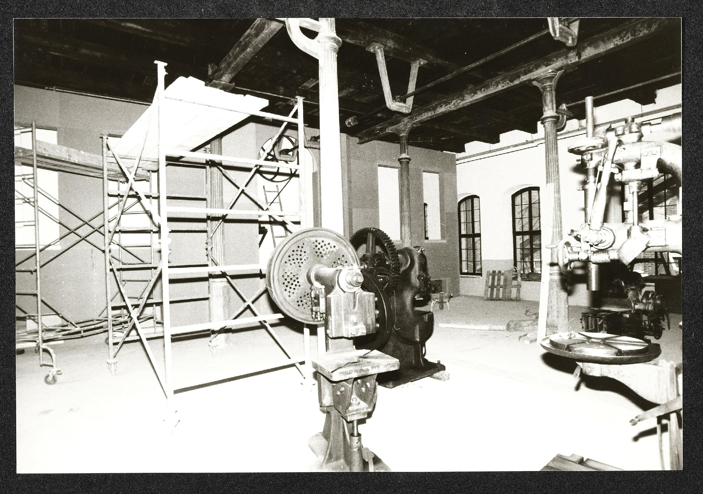 | Beschreibung | Aufbau der Objekte für den Ausstellungsraum "Transmission" für die Landesausstellung 1987 im Museum Industrielle Arbeitswelt Steyr. |