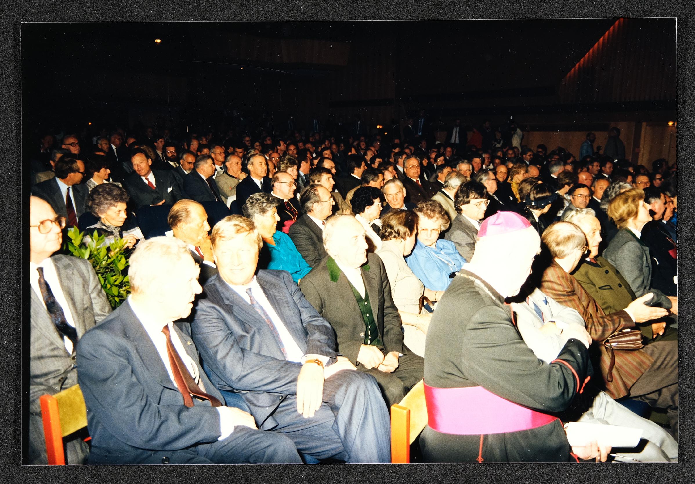 | Beschreibung | Festakt am 30. April 1987 im Stadtsaal Steyr anlässlich der Eröffnung der Landesausstellung 1987 "Arbeit Mensch Maschine: Der Weg in die Industriegesellschaft" im Museum Industrielle Arbeitswelt Steyr. |