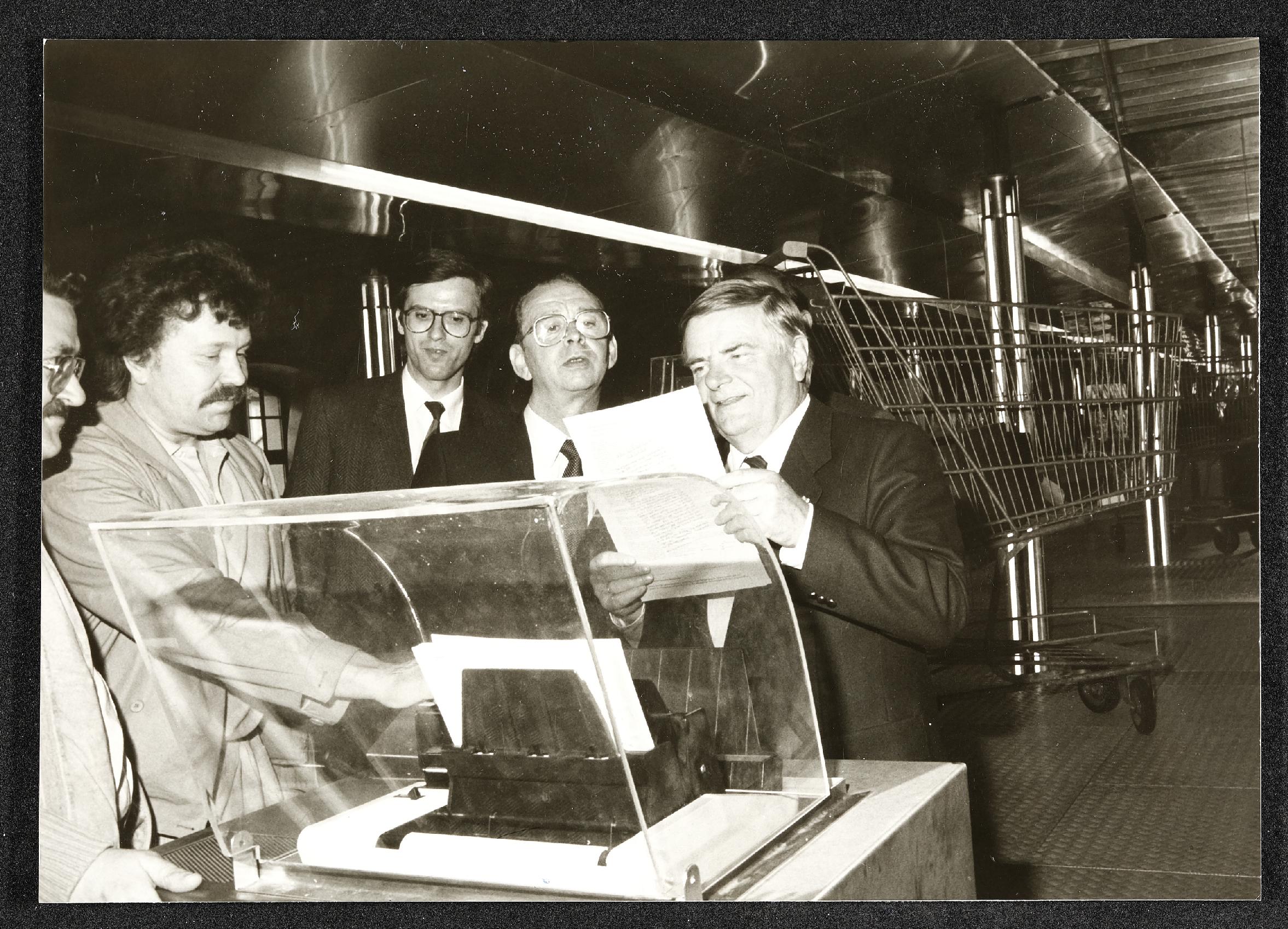 | Beschreibung | Besuch der Landesausstellung 1987 "Arbeit Mensch Maschine: Der Weg in die Industriegesellschaft" von Minister Egmont Foregger. Das Foto zeigt Minister Egmont Foregger lesend. Neben ihm steht Heinrich Schwarz, der damalige Bürgermeister von Steyr. |