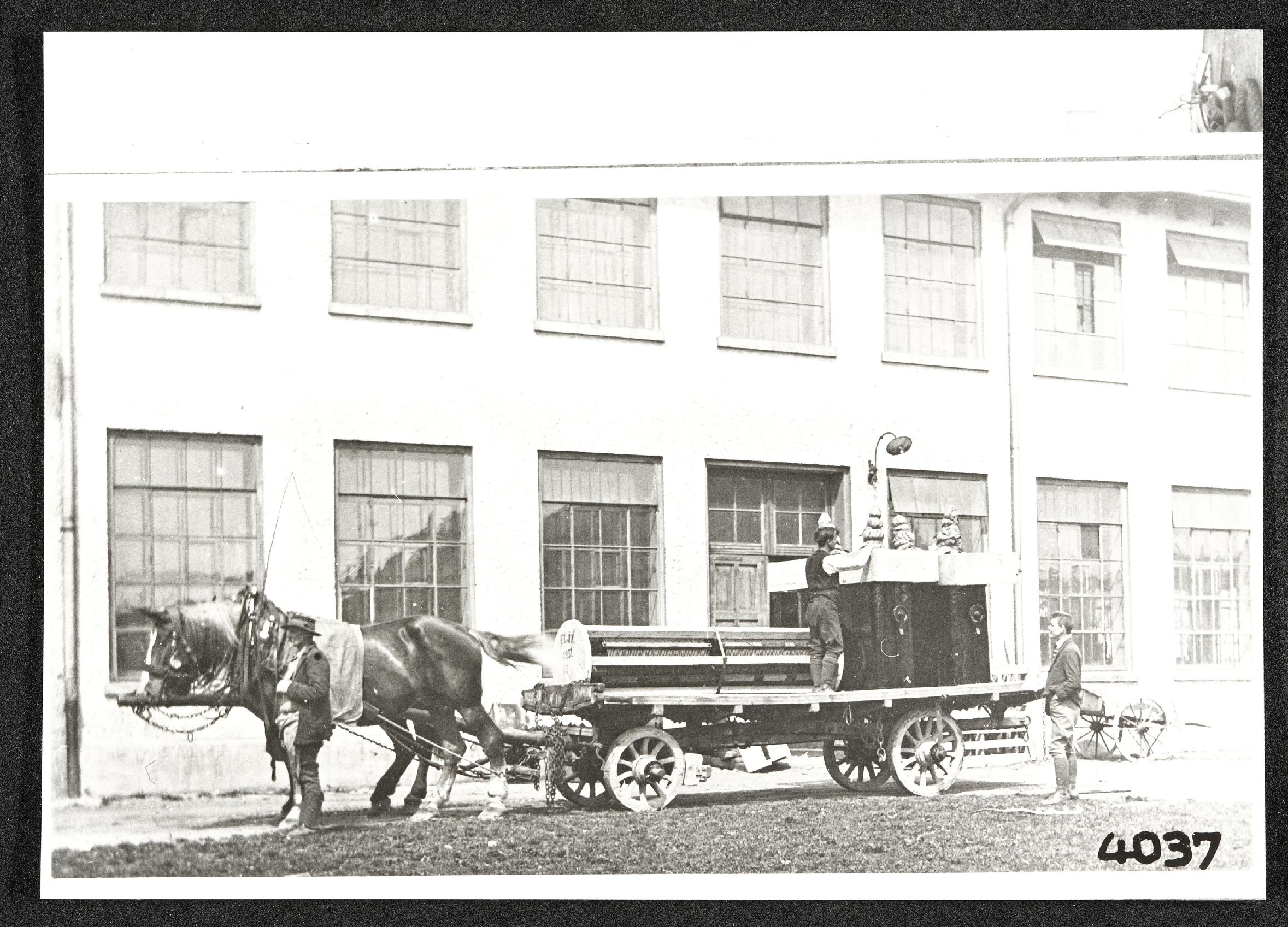 Industrie Fabrik Pferdewagen Arbeiter Mann |