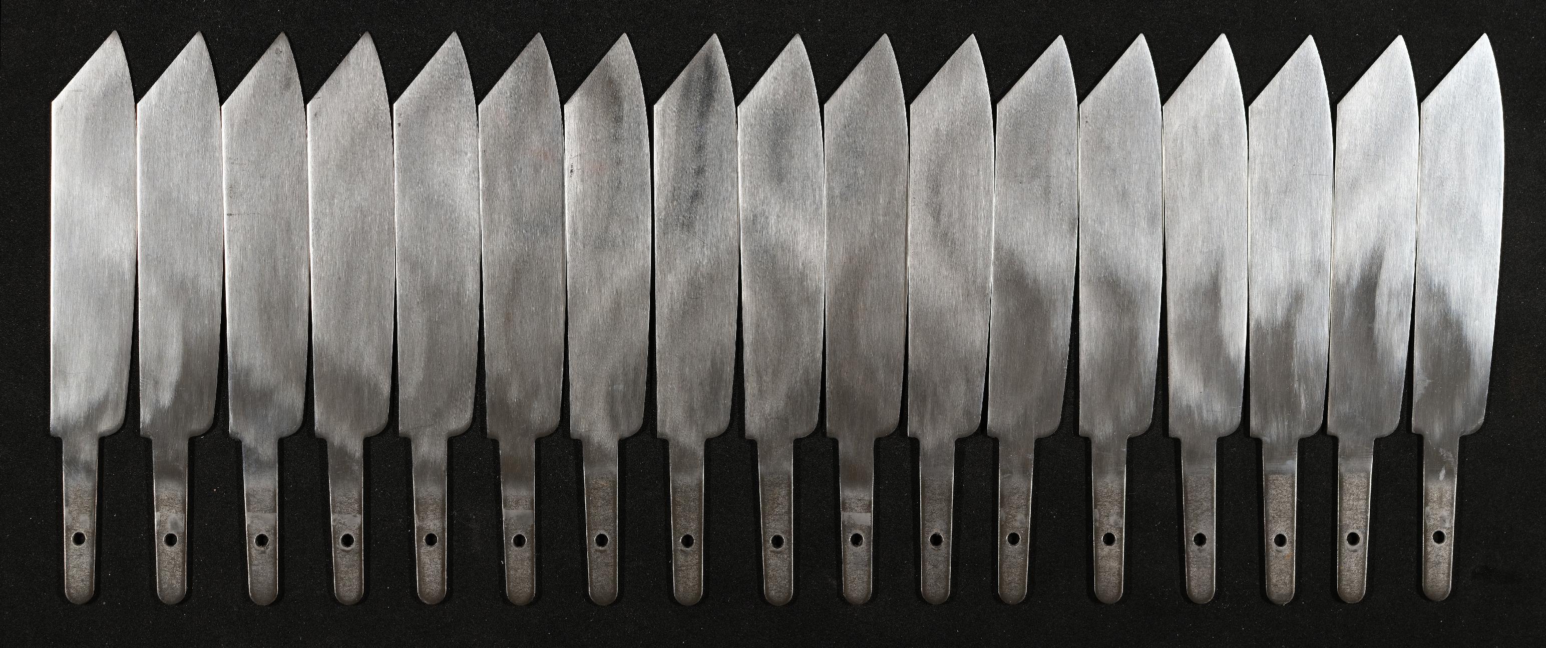 | Beschreibung | Messerklingen der Firma Hack-Werke, bestehend aus zwanzig Stück, Traunviertler Jausenmesser |