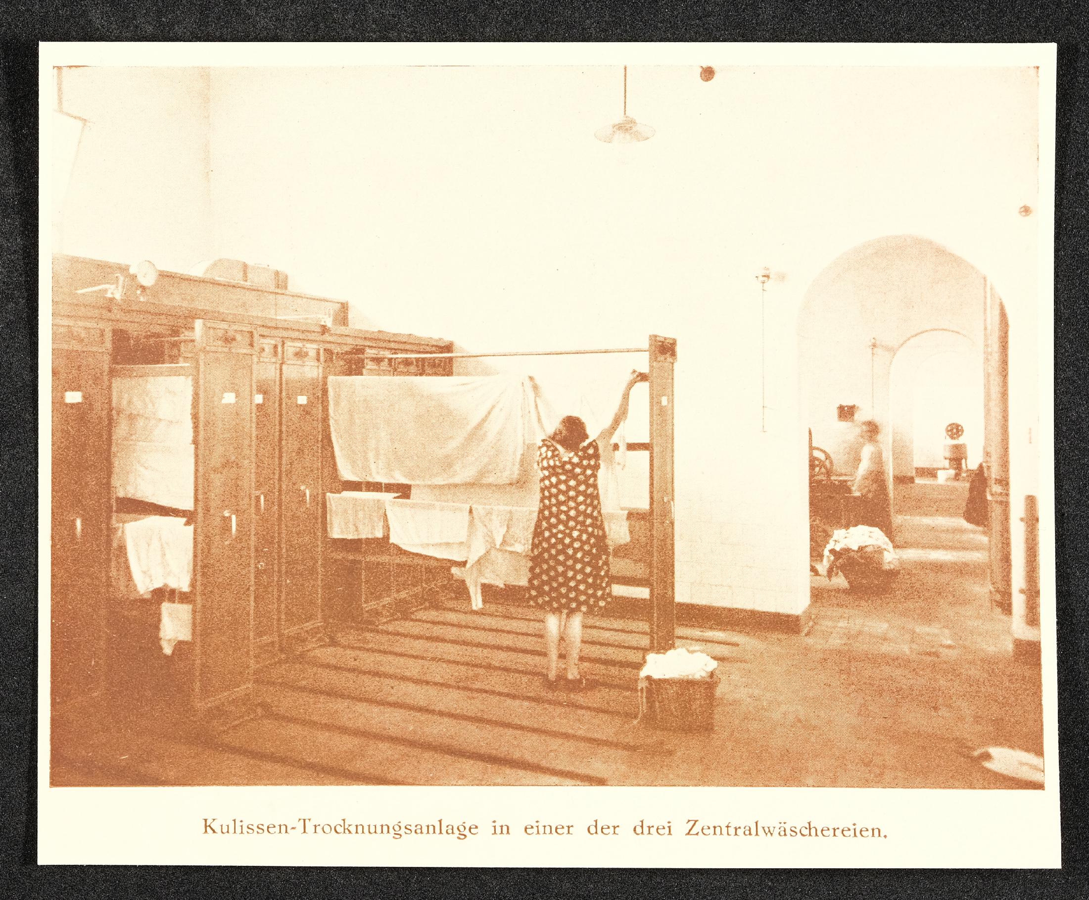| Beschreibung | Kulissen-Trocknungsanlage in einer der drei Zentralwäschereien. |