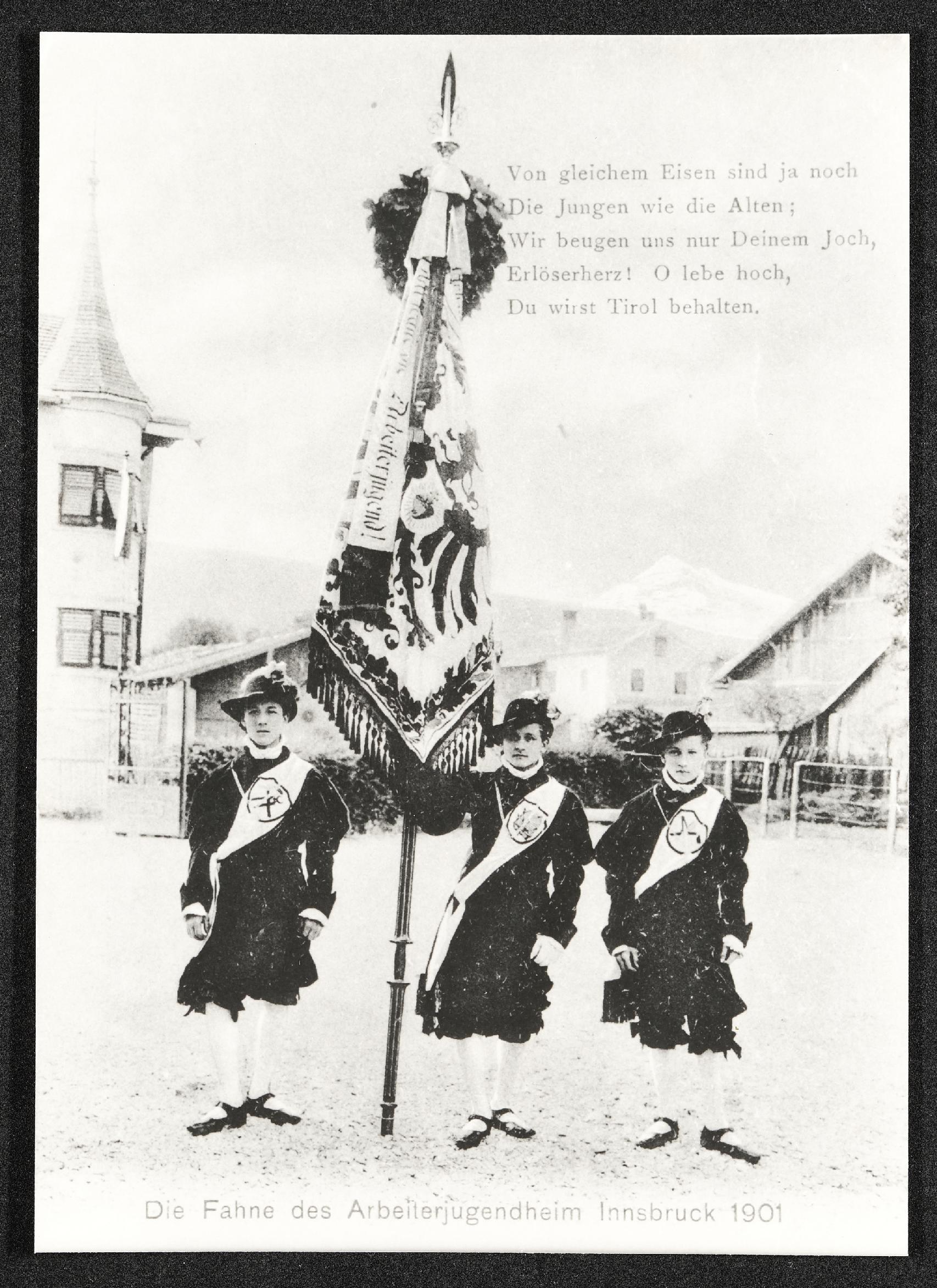 | Beschreibung | Fahne des Arbeiterjugendheimes der christlichen Arbeiterbewegung in Innsbruck, 1901 |