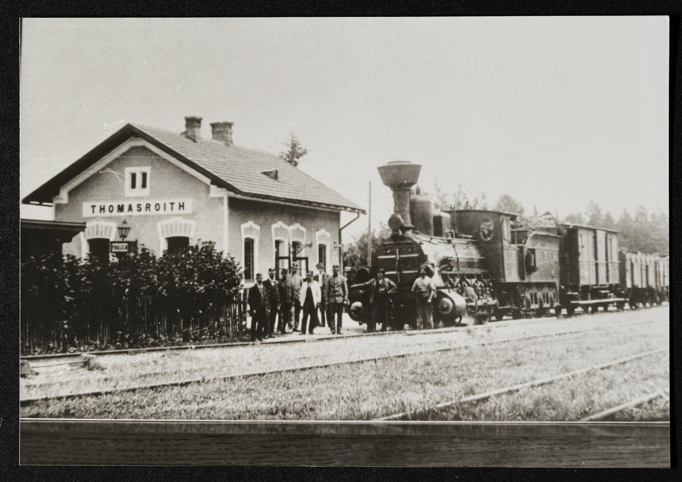 | Beschreibung | Für den Abtransport der Braunkohle gibt es bereits 1849 eine Pferdebahn von Attnang nach Thomasroith. In Zeiten der Industrialisierung wird diese durch eine Schmalspurbahn ersetzt und am 23. Oktober 1877 eröffnet. Die Aufnahme stammt vom 9. Juli 1907. |