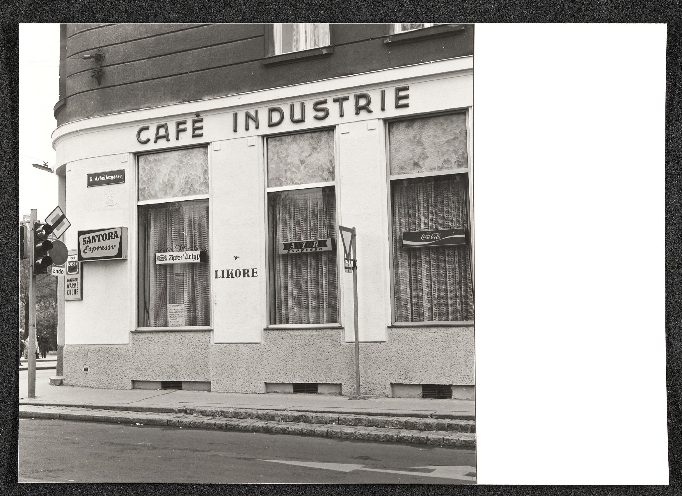 | Beschreibung | Das Café Industrie im 5. Bezirk (Ecke Arbeitergasse - Margaretengürtel) schließt 2017 nach 103 Jahren. Die Aufnahme stammt von 1986. |