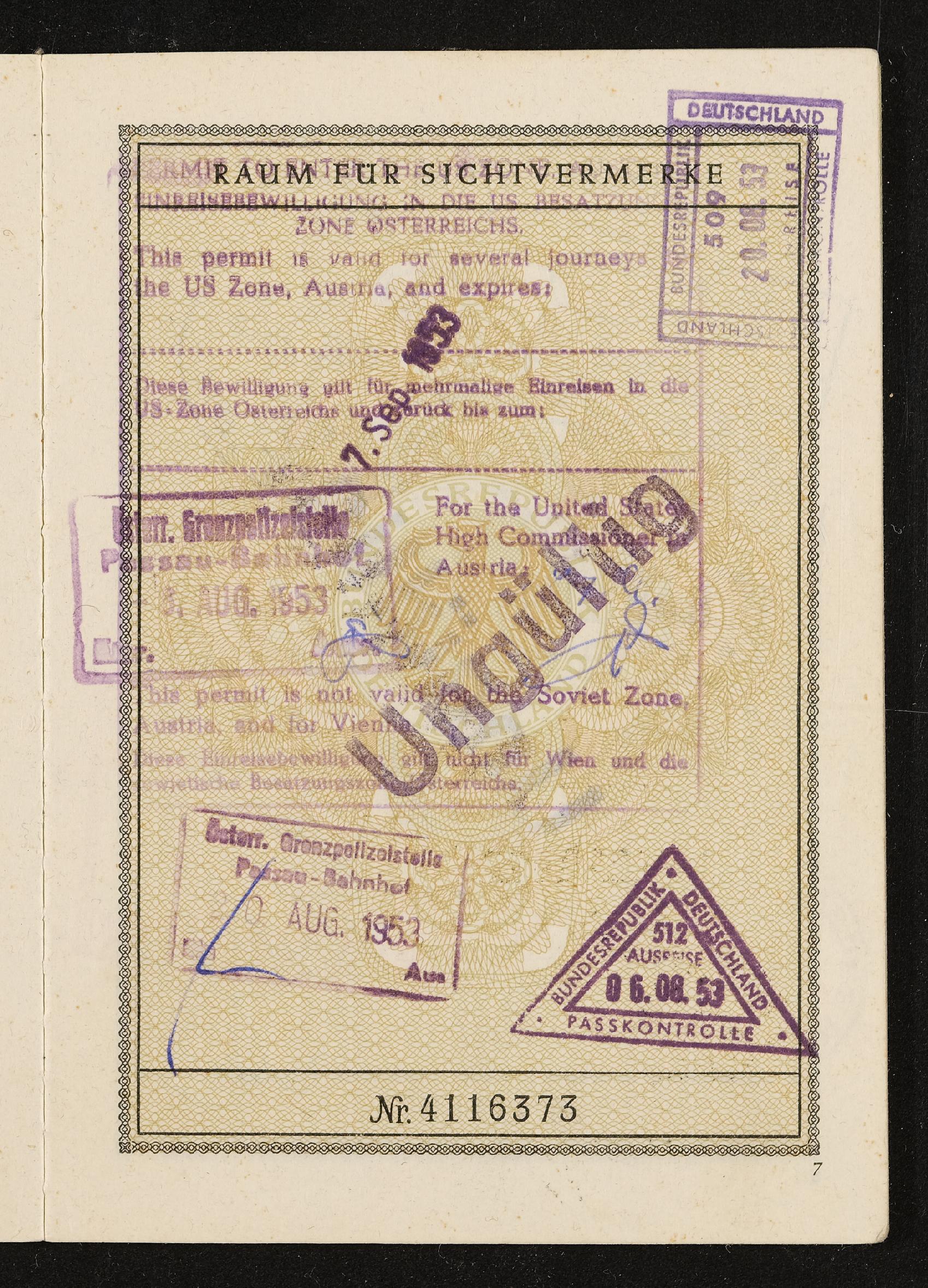 | Beschreibung | Reisepass Engelbert Pölderl, Postbetriebsassistent, Bundesrepublik Deutschland, ausgestellt am 11. Mai 1953 in Aalen |
