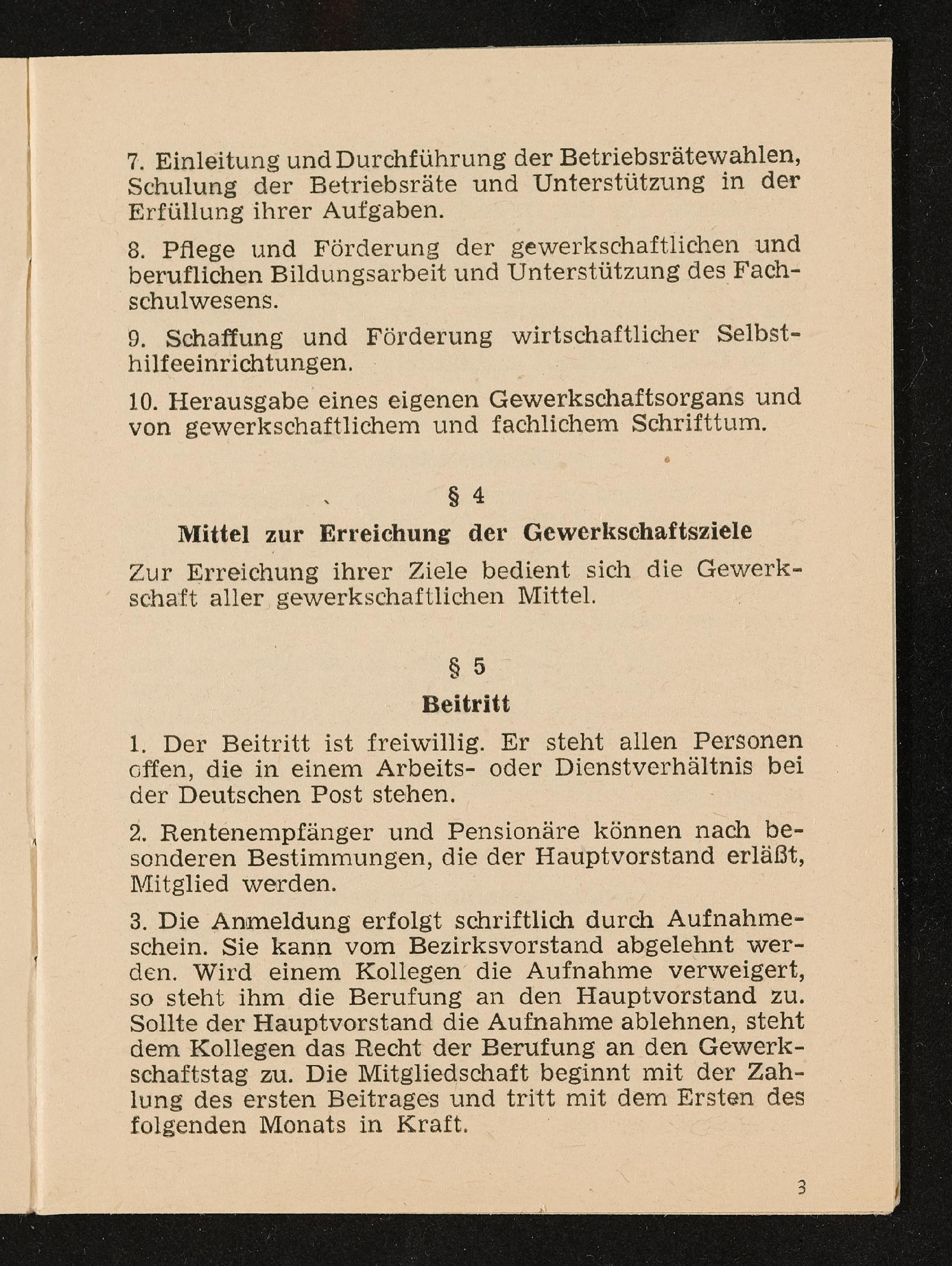 | Beschreibung | Satzung der Deutschen Postgewerkschaft, gültig ab 30. Juni 1949, herausgegeben vom Hauptvorstand der Deutschen Postgewerkschaft |