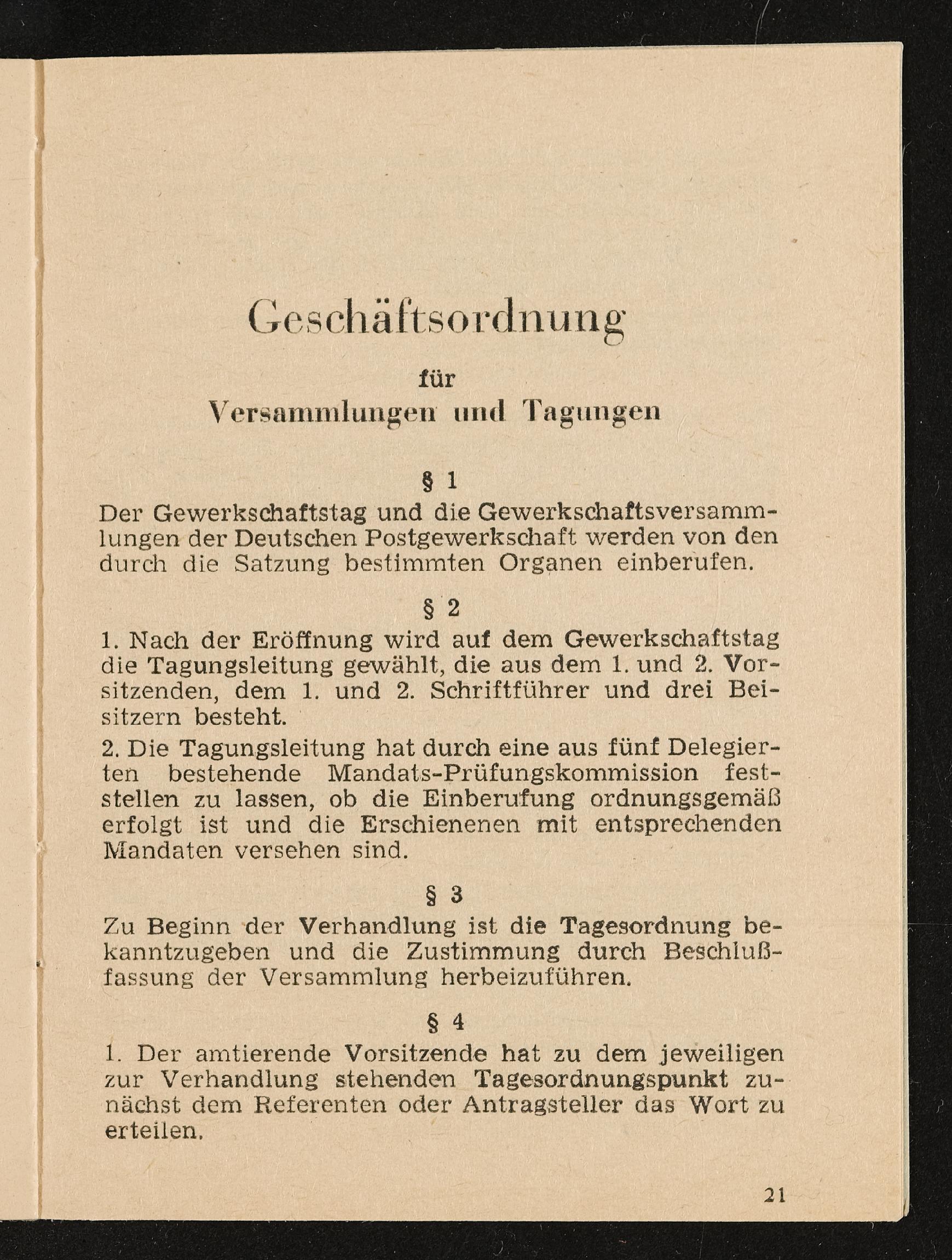 | Beschreibung | Satzung der Deutschen Postgewerkschaft, gültig ab 30. Juni 1949, herausgegeben vom Hauptvorstand der Deutschen Postgewerkschaft |