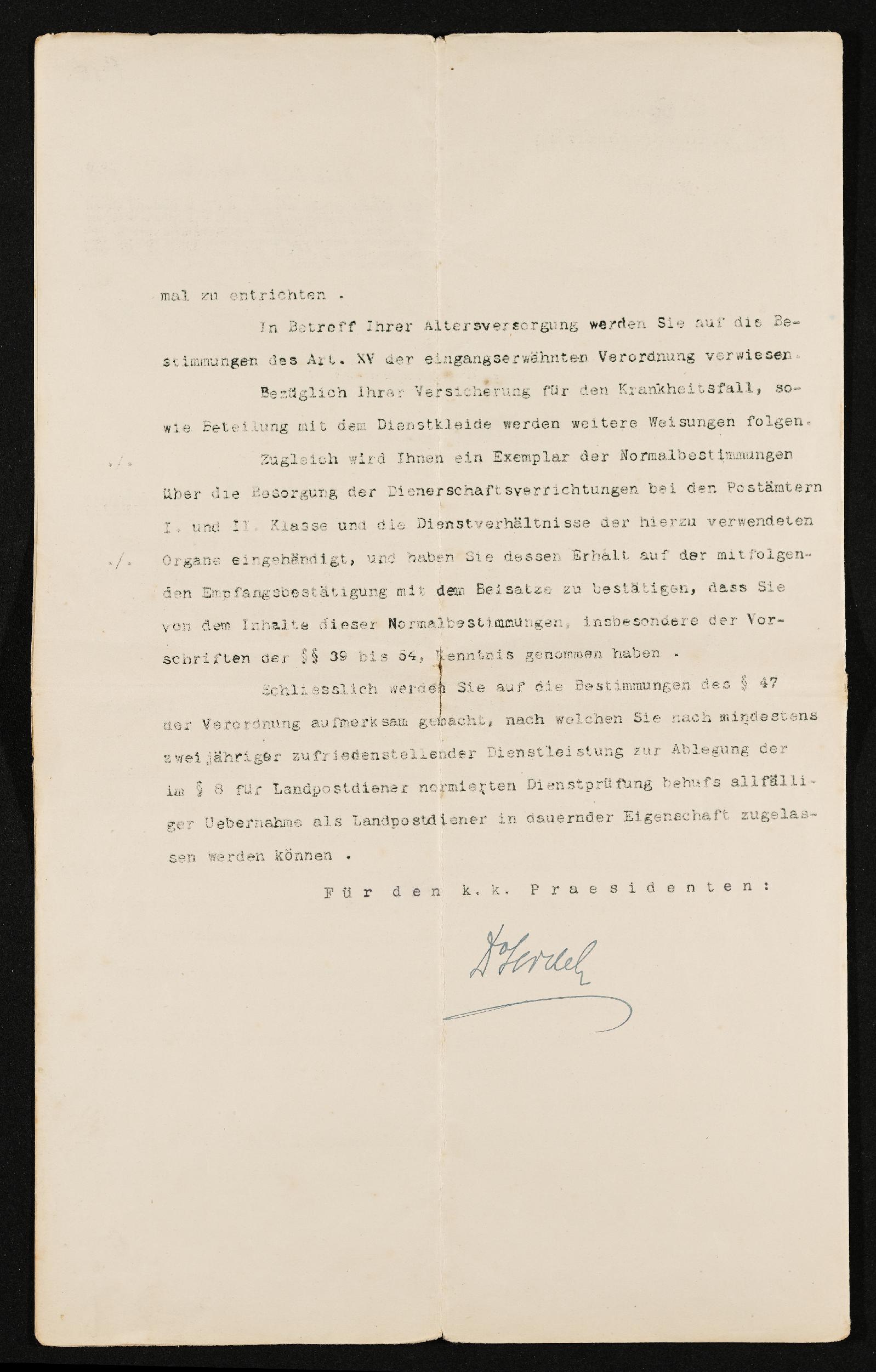 | Beschreibung | Schreiben der k. k. Post- und Telegraphen-Direktion für Böhmen an Engelbert Pölderl, Prag, 23. Dezember 1913 |