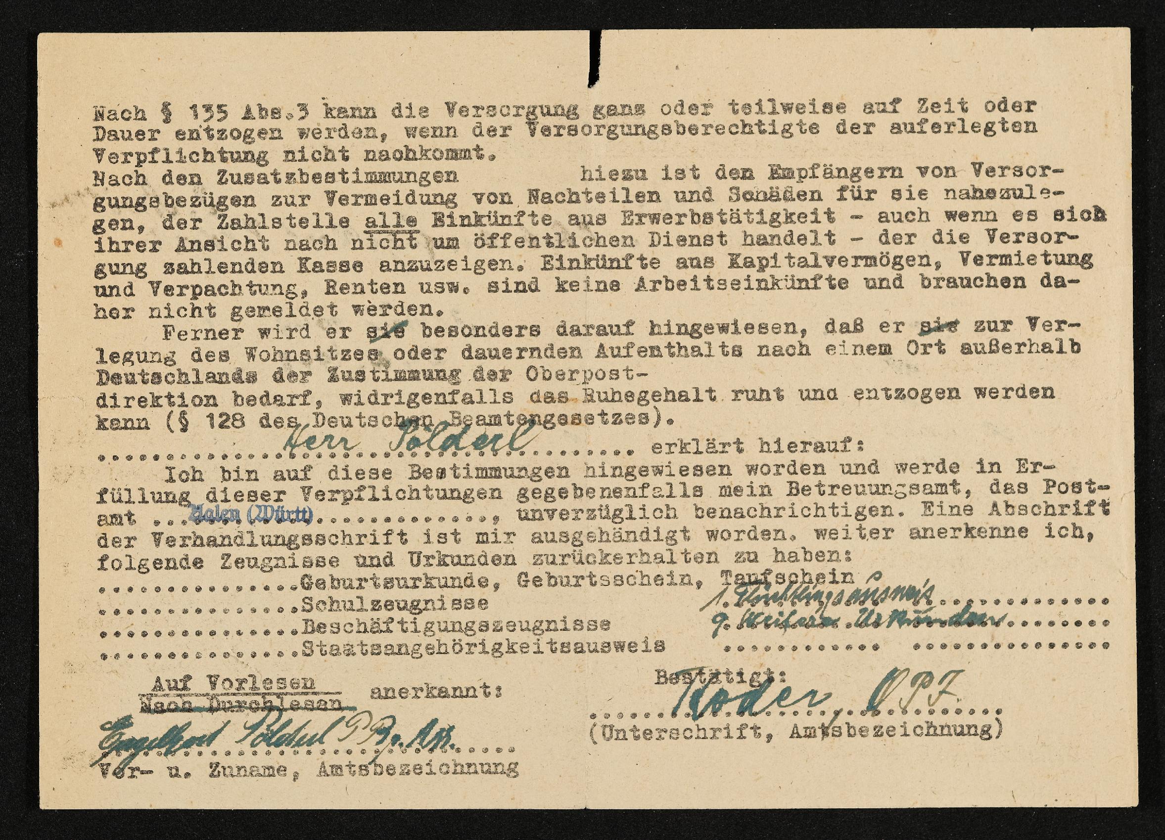 | Beschreibung | Abschrift Verhandlungsschrift, Zuruhesetzung, Vorladung für Engelbert Pölderl, 31. März 1948 |