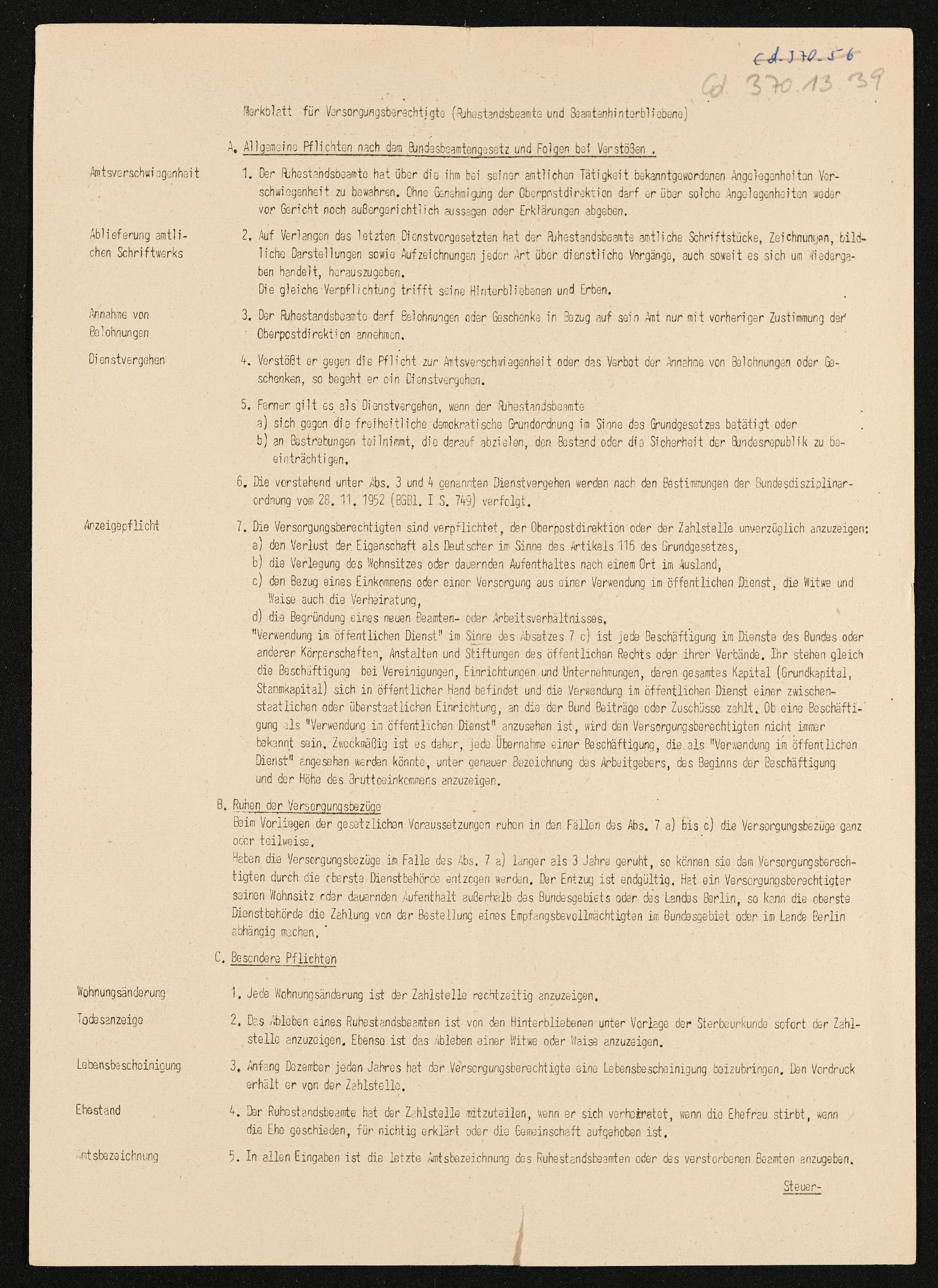 | Beschreibung | Merkblatt für Versorgungspflichtige, Ruhestandsbeamte und Beamtenhinterbliebene |
