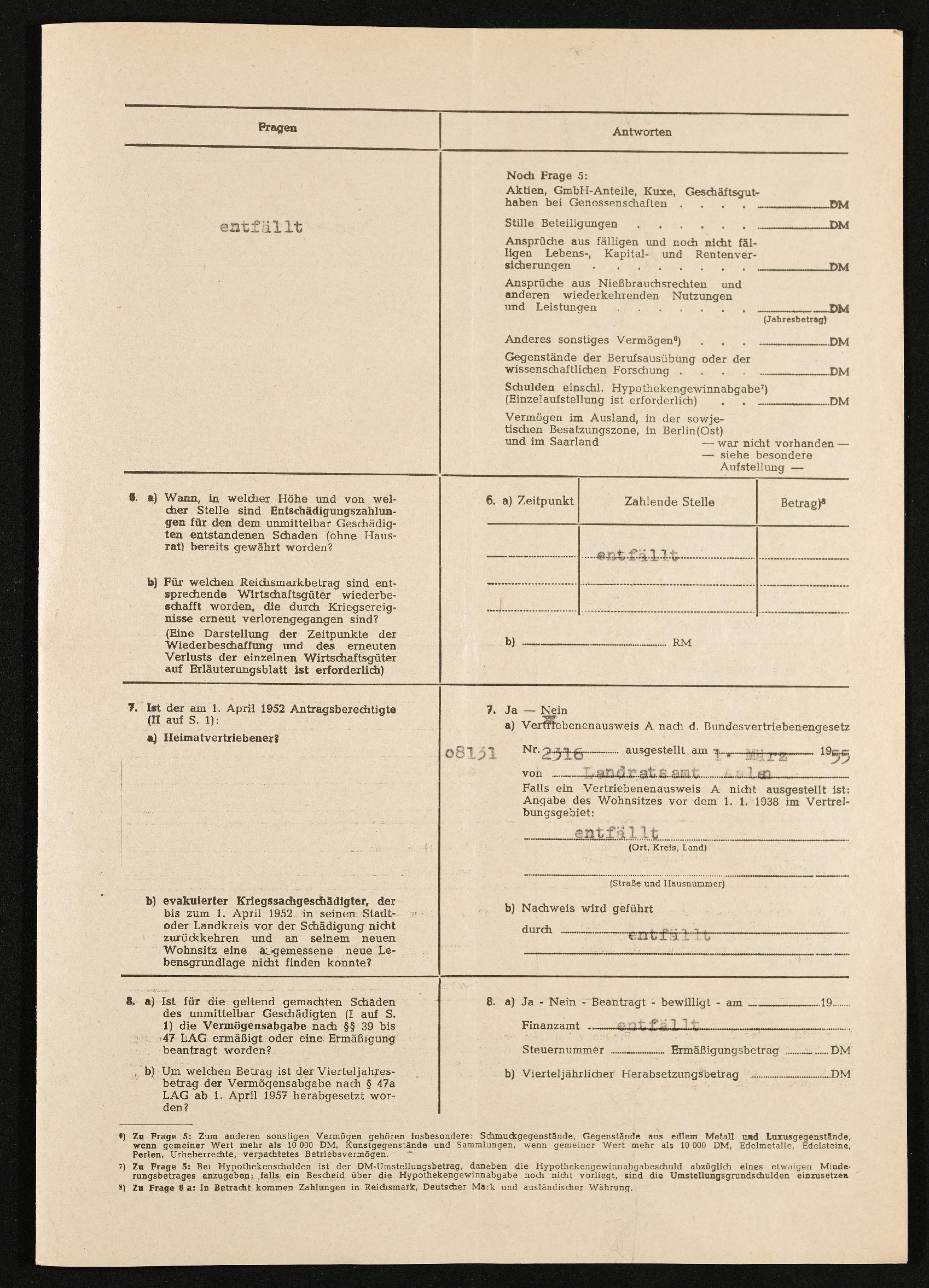 Antrag Hauptentschädigung nach Lastenausgleichsgesetz Engelbert Pölderl