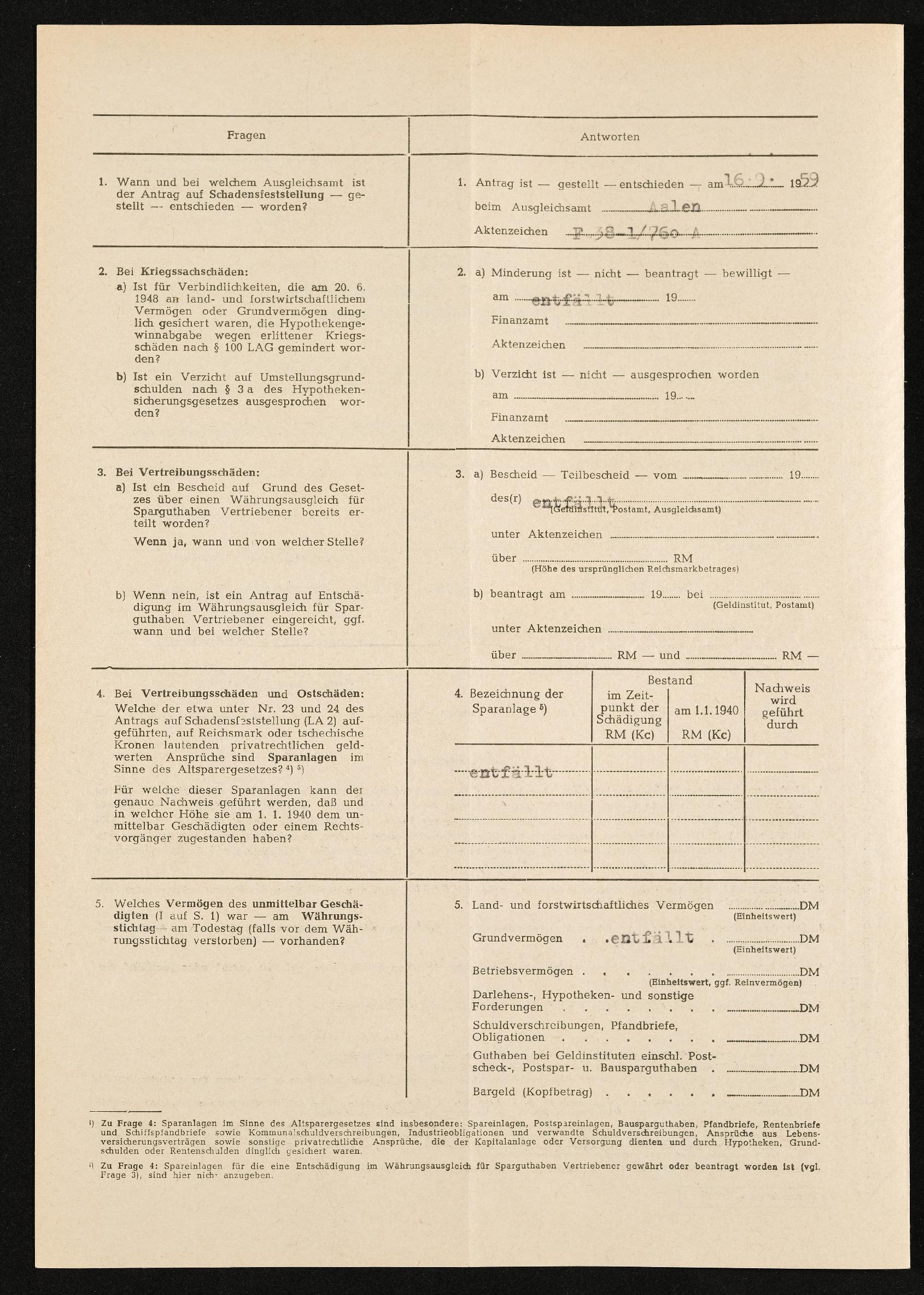 Antrag Hauptentschädigung nach Lastenausgleichsgesetz Aloisia Pölderl