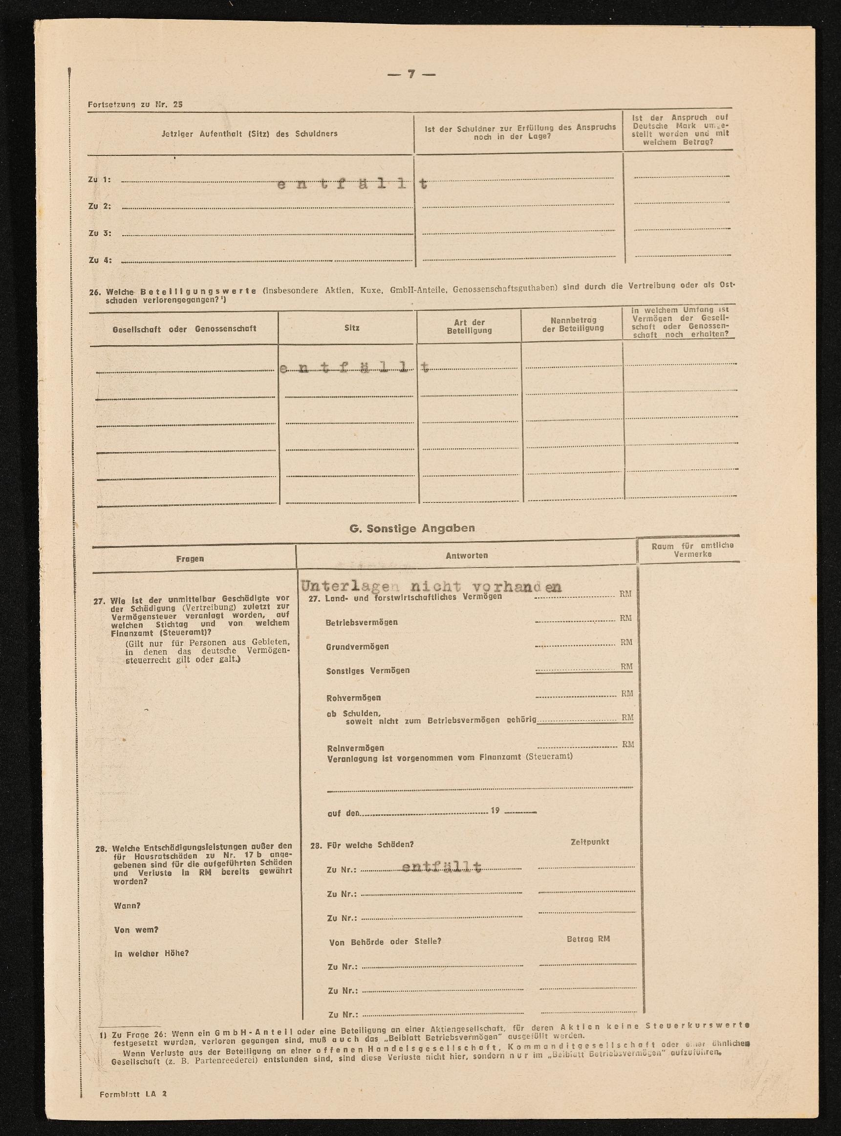 | Beschreibung | Antrag auf Feststellung von Verteibungsschäden, Kriegsschäden, Ostschäden, Engelbert Pölderl, Aalen, 5. Dezember 1952 |