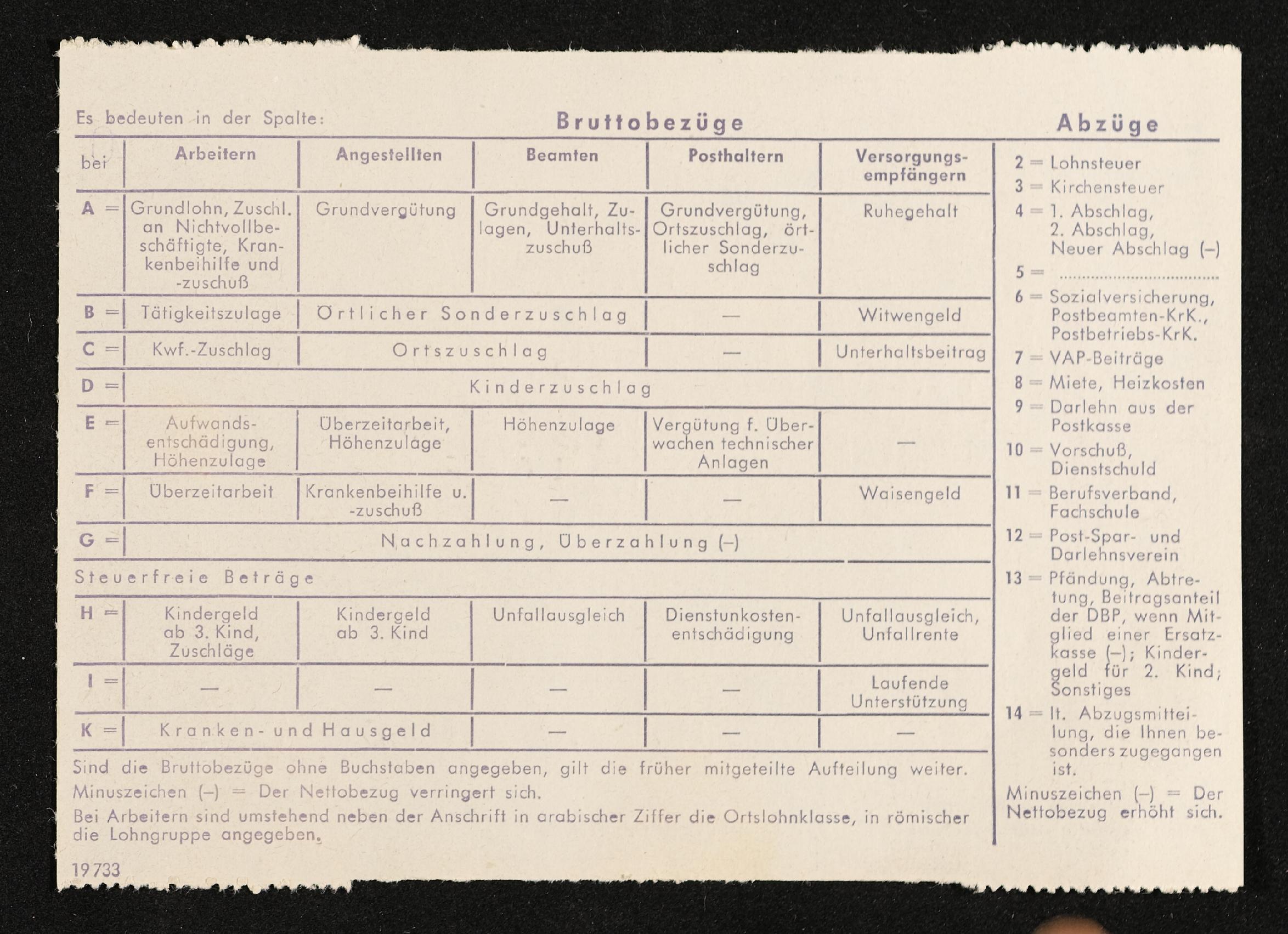| Beschreibung | Lohnzettel, Postbetriebsassistent Engelbert Pölderl, Oberpostdirektion Stuttgart, Februar 1963 |