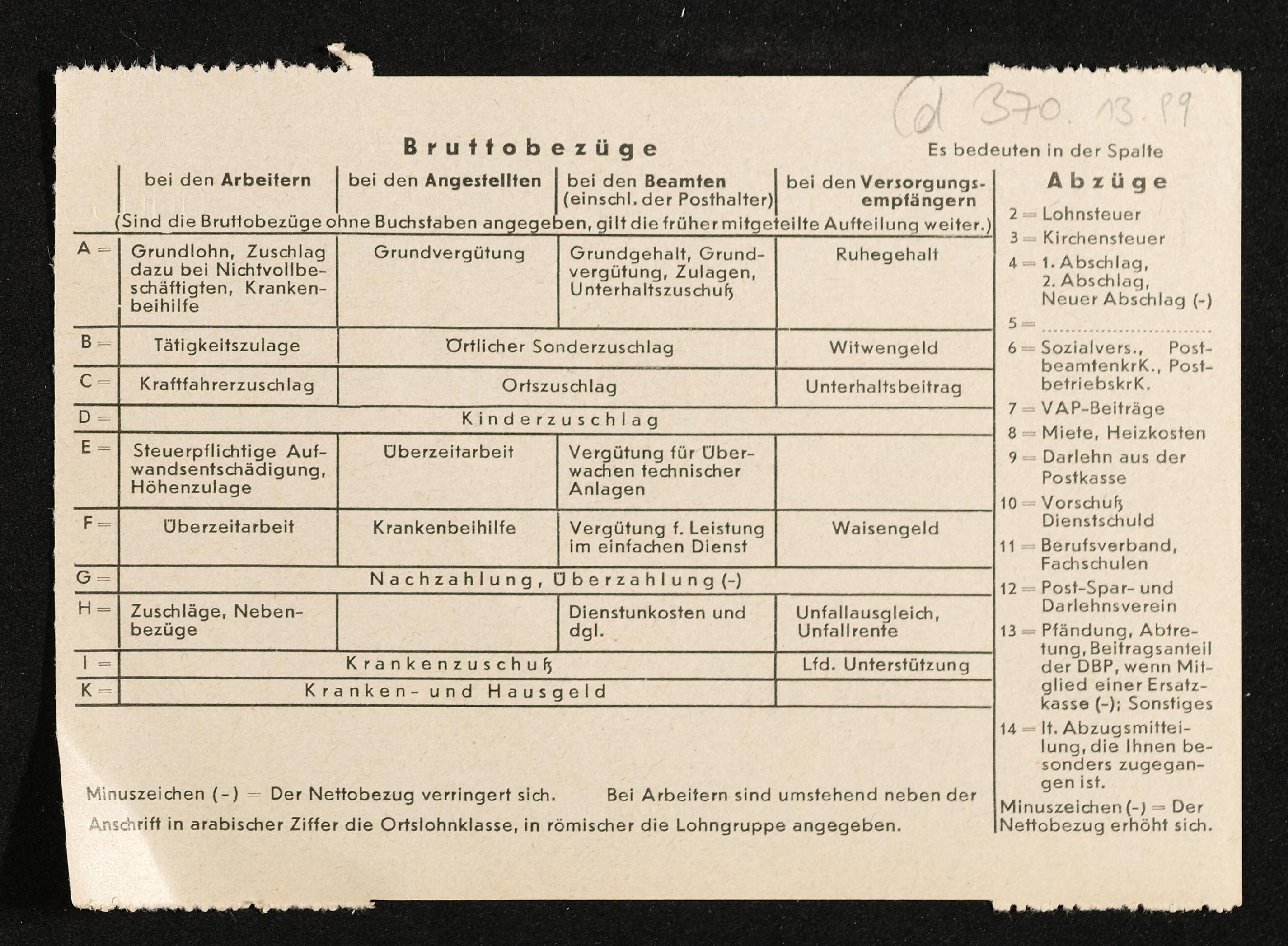 | Beschreibung | Lohnzettel, Postbetriebsassistent Engelbert Pölderl, Oberpostdirektion Stuttgart, Mai 1962 |