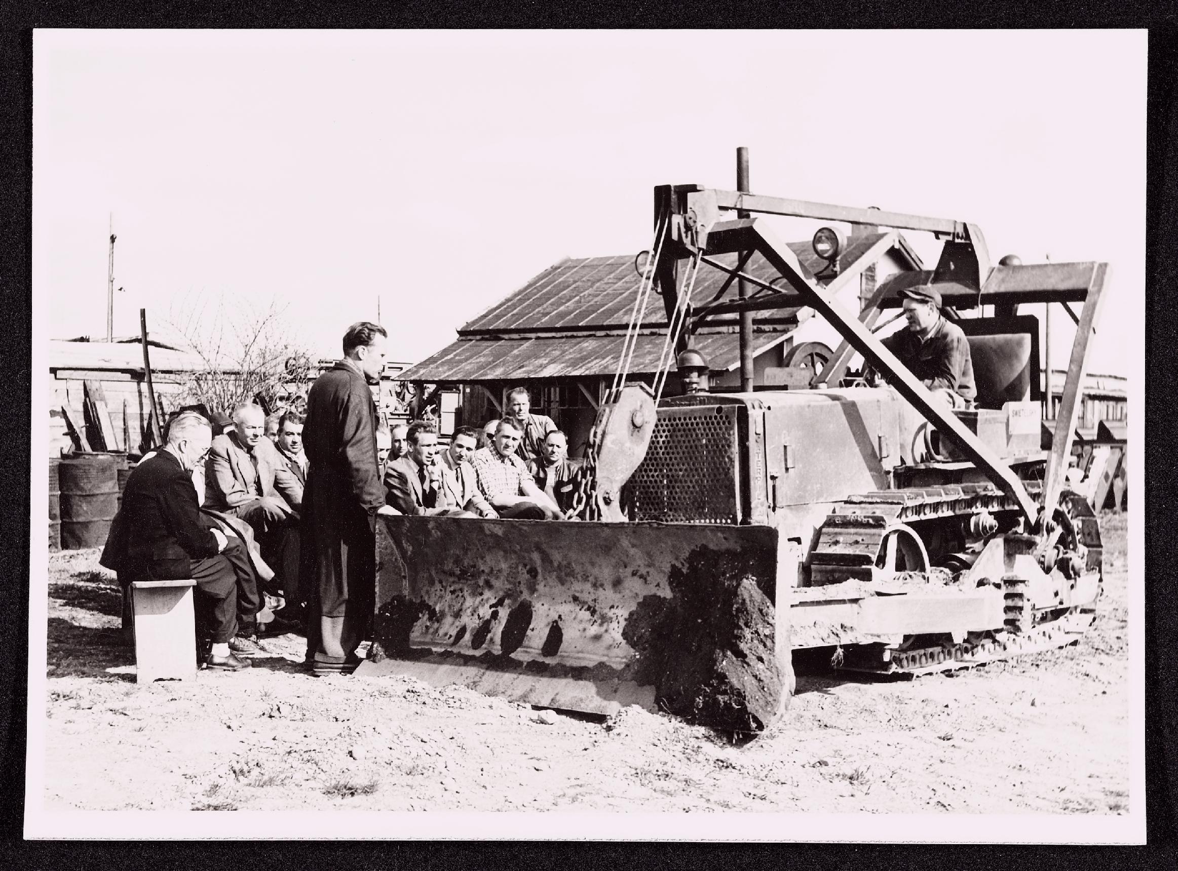 | Beschreibung | Straßenbaumaschine mit Arbeitern |