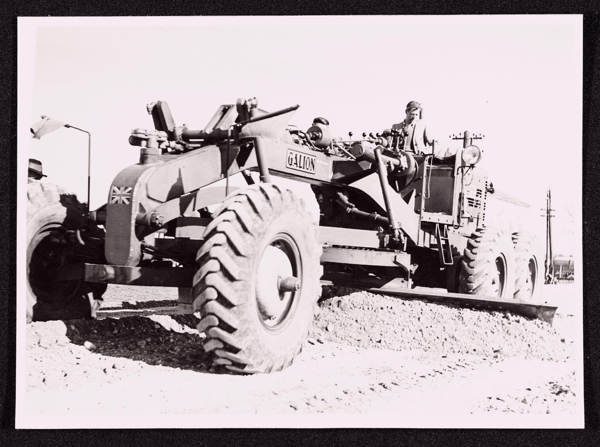 | Beschreibung | Straßenbaumaschine mit Arbeitern |