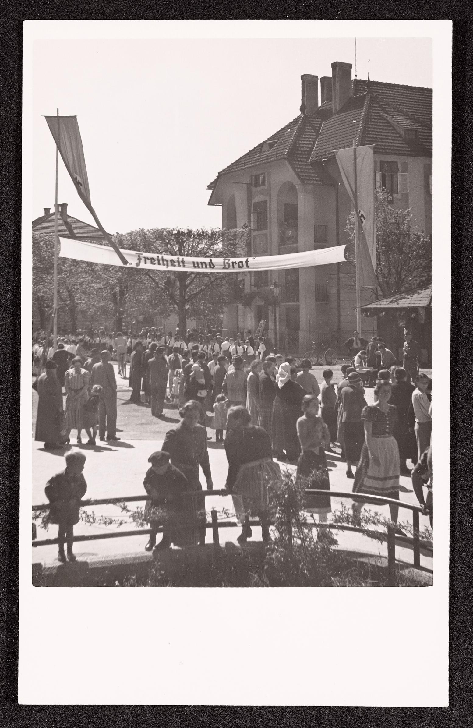 | Beschreibung | Nationalsozialistischer Empfang von Hermann Göring vor dem Personalhaus der Eisenbahner in der Franckstraße anlässlich des Spatenstichs der Hermann Göring Werke in Linz |