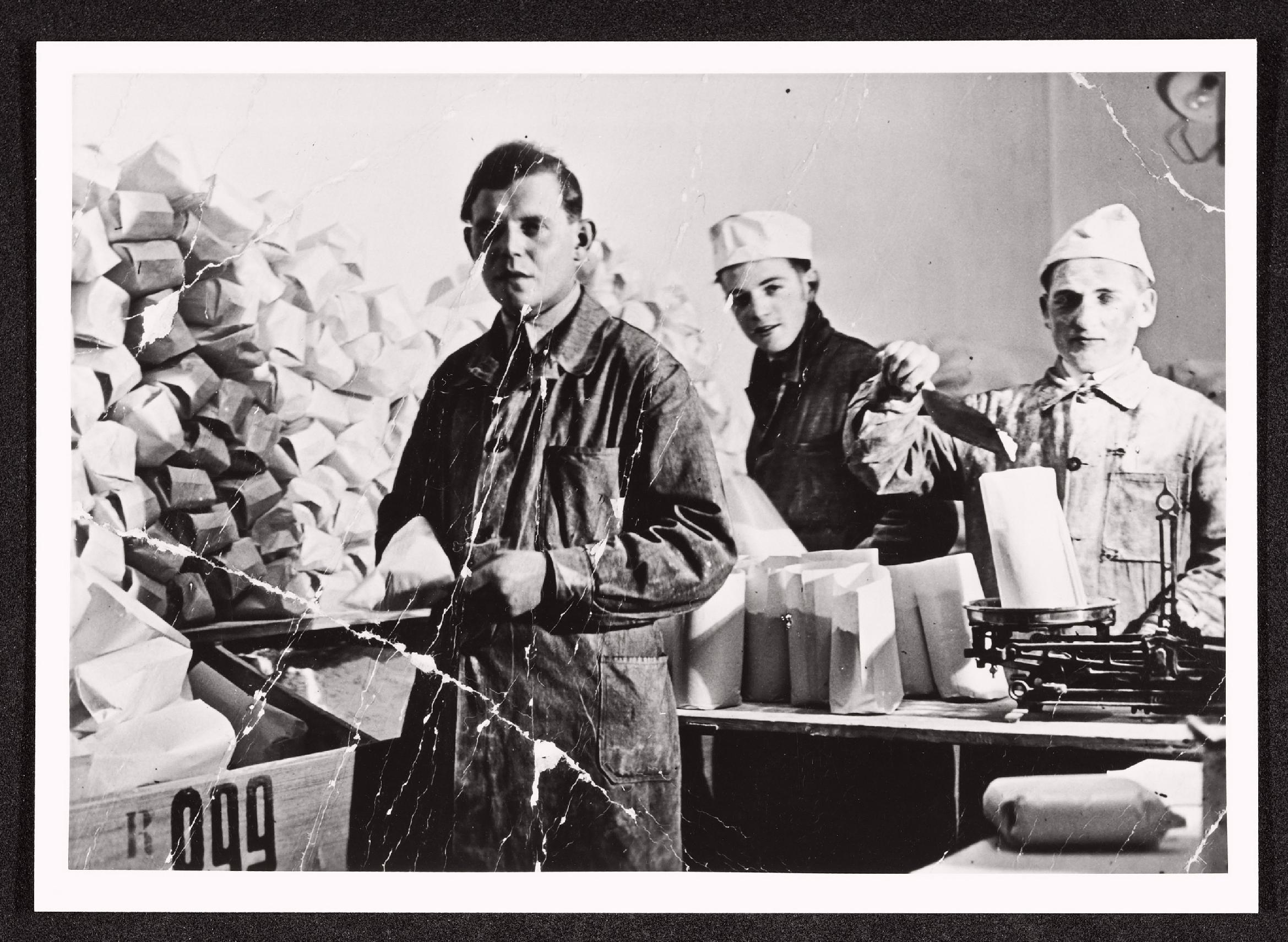 | Beschreibung | Angestellte beim Einwiegen von Mehl im Konsumverein Krems |