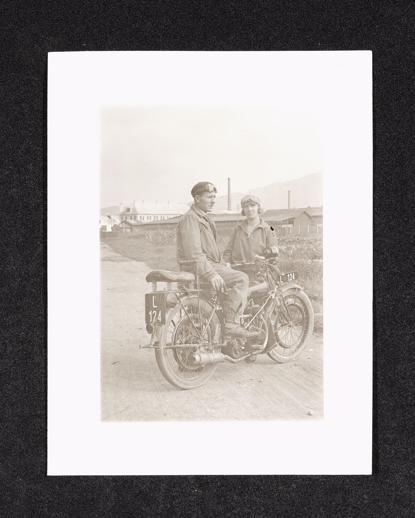 | Beschreibung | Ein Mann und eine Frau auf einem Motorrad der britischen Marke Ariel, beide Personen tragen Schutzbrillen, im Hintergrund Fabriksgebäude mit zwei Schloten und Baracken und ein bewaldeter Berghang. Kennzeichen deutet darauf hin, dass das Motorrad in Linz registriert wurde. Das Foto wurde auf der Rückseite nach 1945 datiert. |