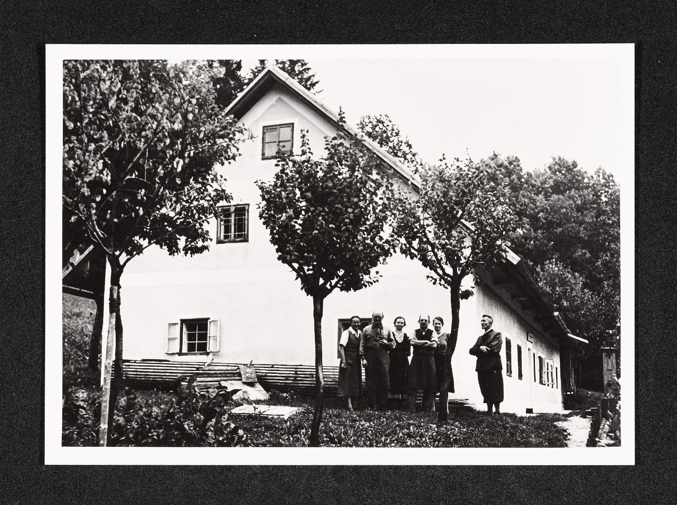 | Beschreibung | Schuster Grasböck mit seiner Familie vor dem Wohnhaus in Fischlham |