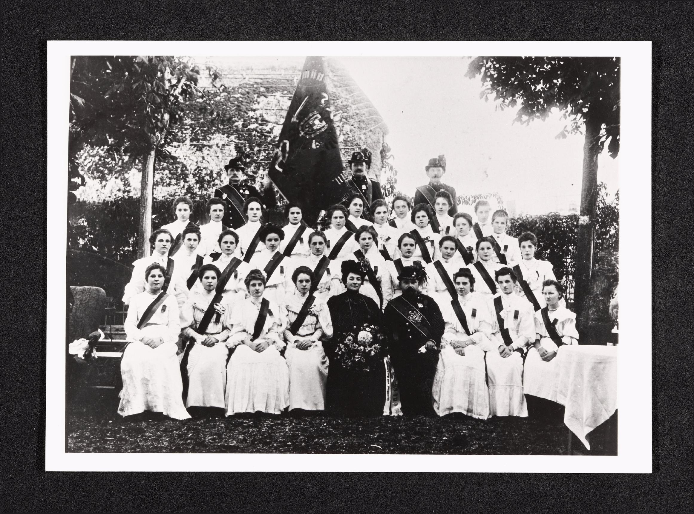| Beschreibung | Jungfernbund mit Fahnenmutter Weber vor dem Kaufhaus Weber in Kleinmünchen |