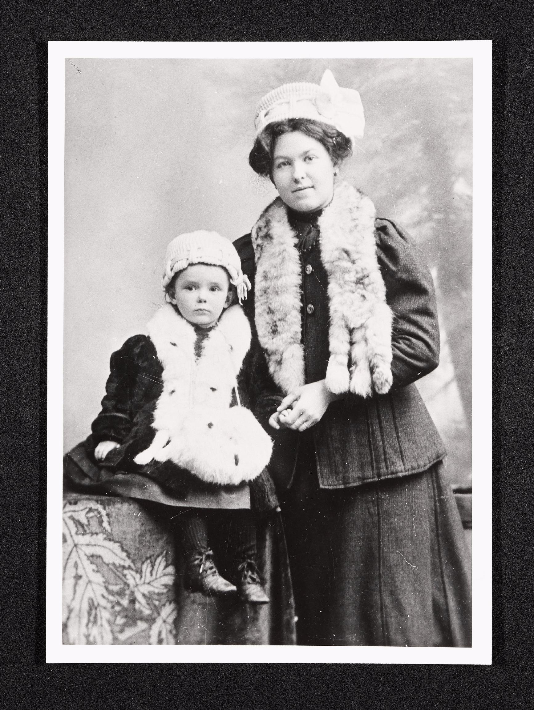 | Beschreibung | Frau mit Kind in Sonntagskleidung mit Nerz |