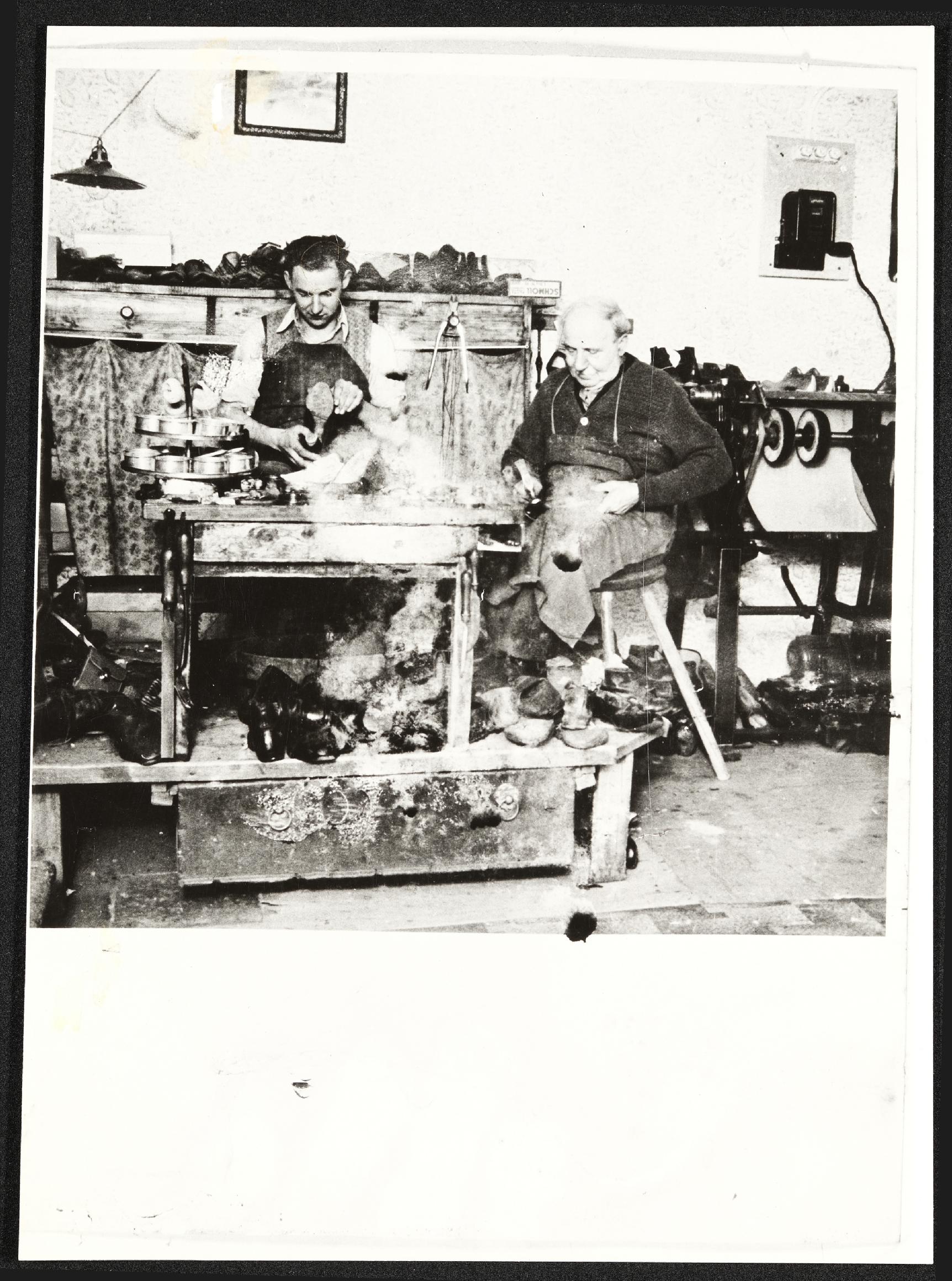 | Beschreibung | Schustermeister mit Lehrling in der Schusterwerkstatt Karl Höbarth |