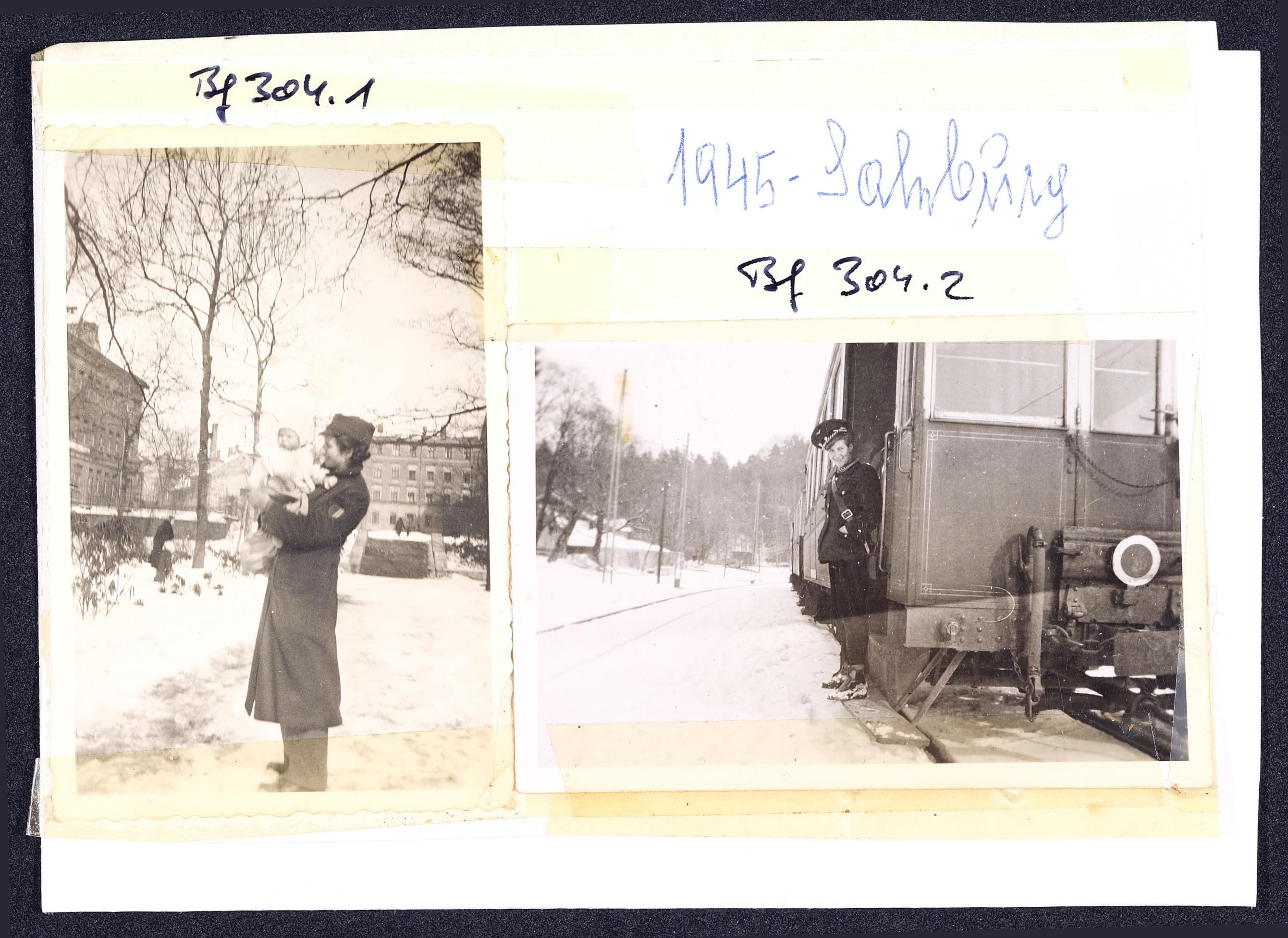 | Beschreibung | Mizzi Söllner in Straßenbahnuniform mit Säugling |
