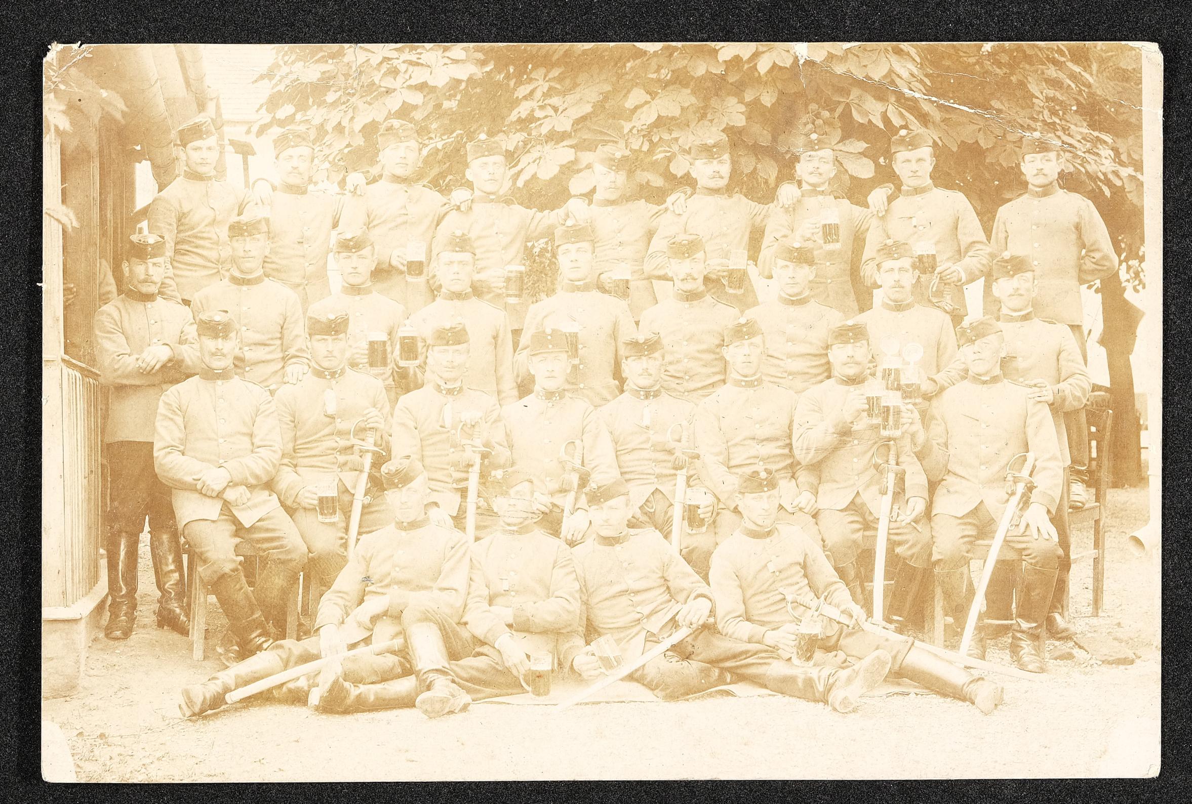 | Beschreibung | Gruppenbild: Soldaten im 1.Weltkrieg; 1.Reihe Mitte ein Hauptmann, flankiert von je zwei Oberleutnants; alle anderen sind Mannschaft |