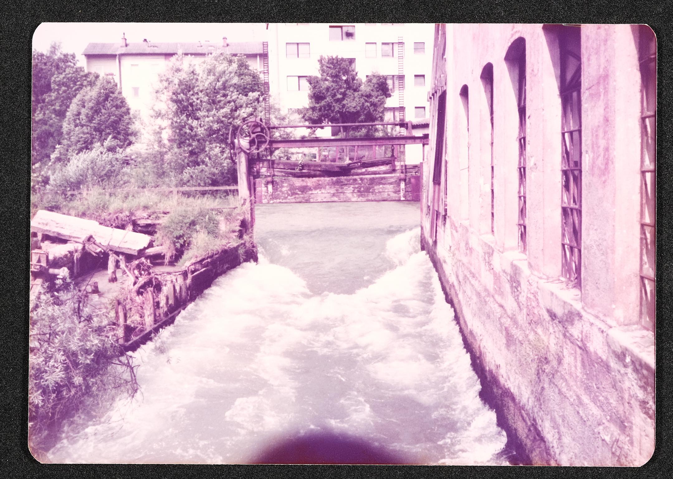 | Beschreibung | Außenansicht der Werndl'schen Nagelfabrik im Bauzustand von 1981, Kanal mit Schleuse |