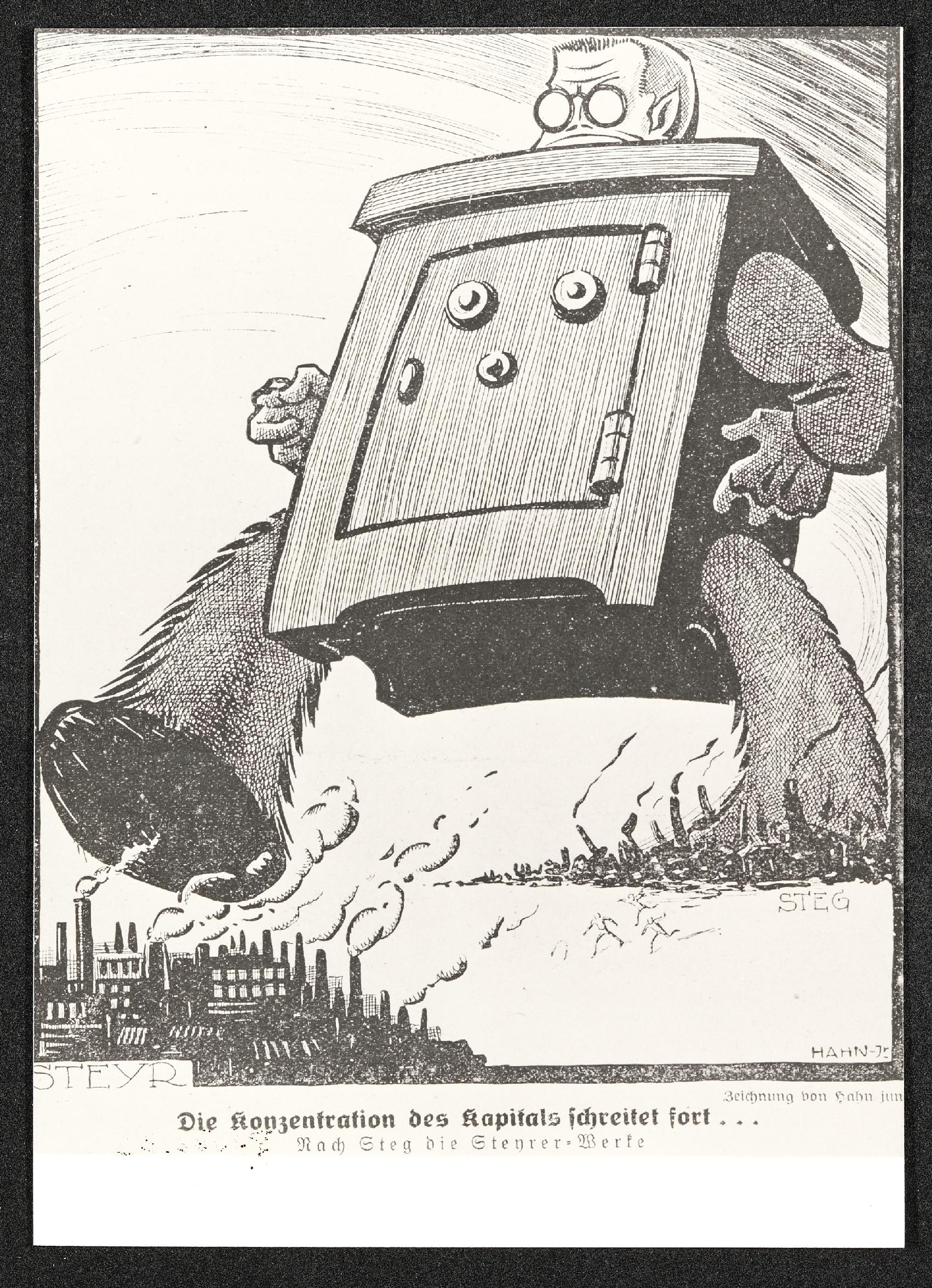 Karikatur zur Krise der Steyr-Werke "Der Kuckuck"