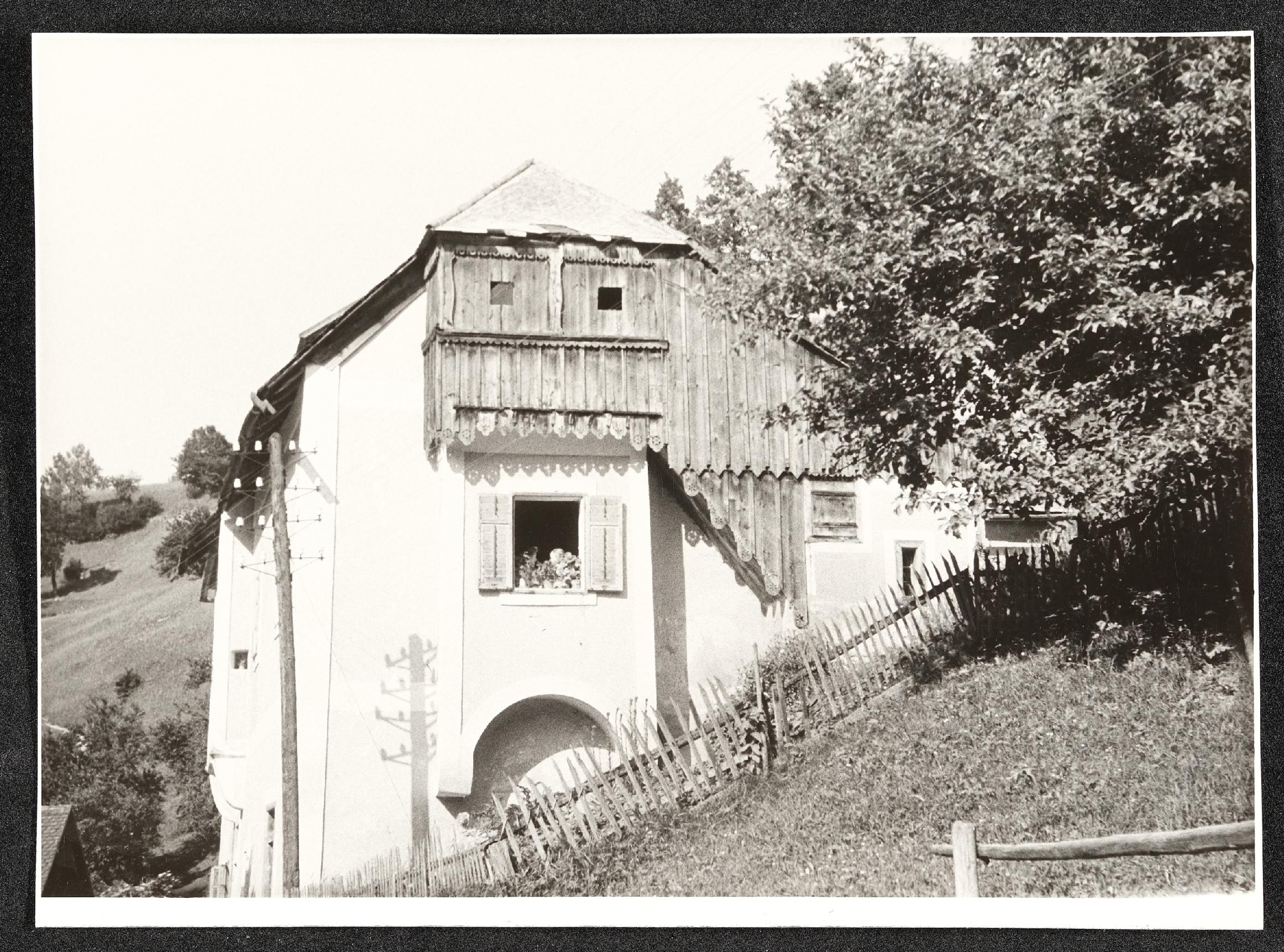 | Beschreibung | Erker und Dachbodenaufgang eines Forsthauses an der Aschatalstraße in Großraming. Aufnahme vom 14. Mai 1949. |
