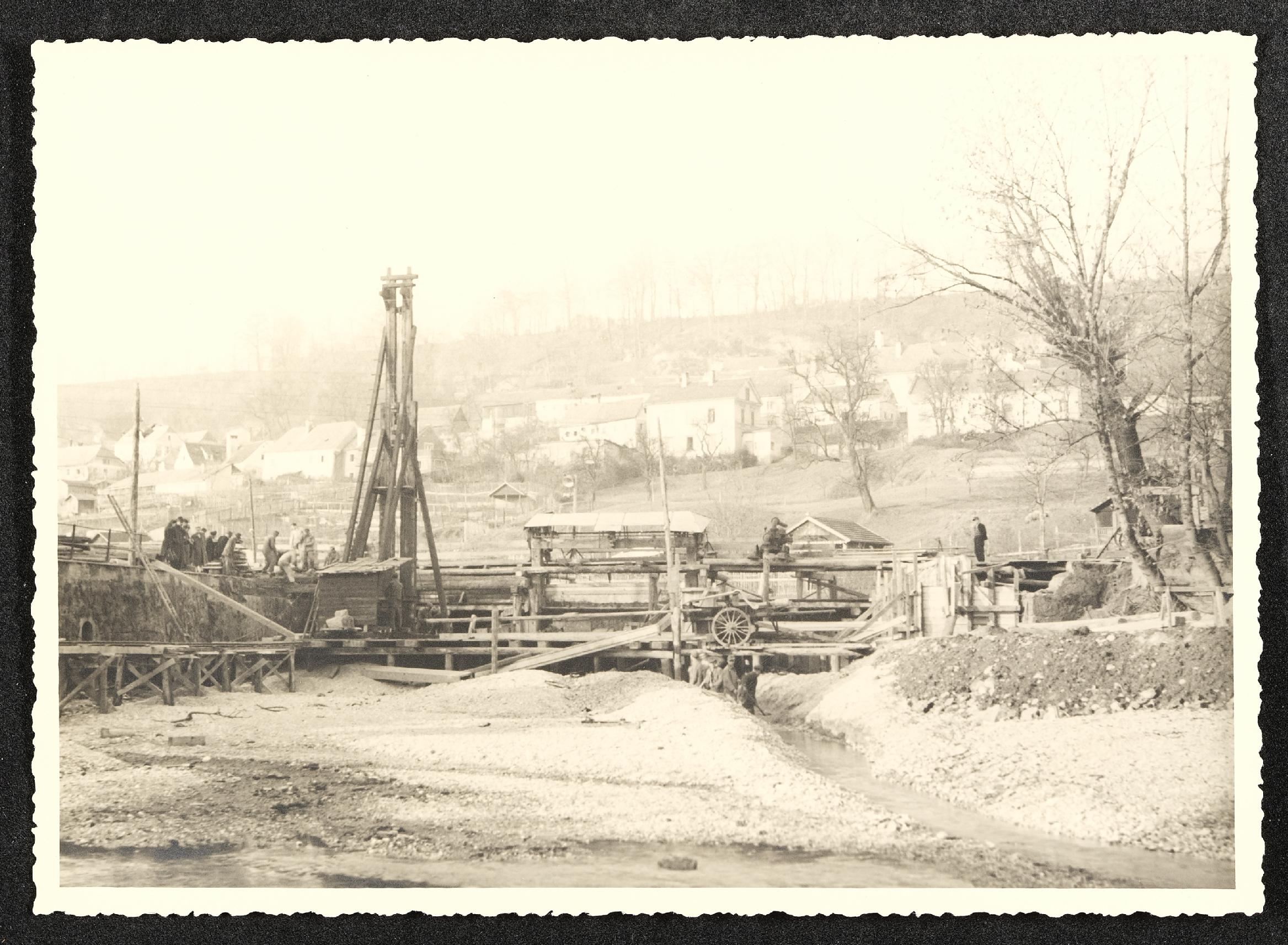 | Beschreibung | Bau der großen Fallenbrücke an der Ecke Wehrgrabengasse - Schwimmschulstraße in Steyr, Baubeginn im Spätherbst 1948. Blick Richtung Wohnhäuser in der Sierningerstraße. |