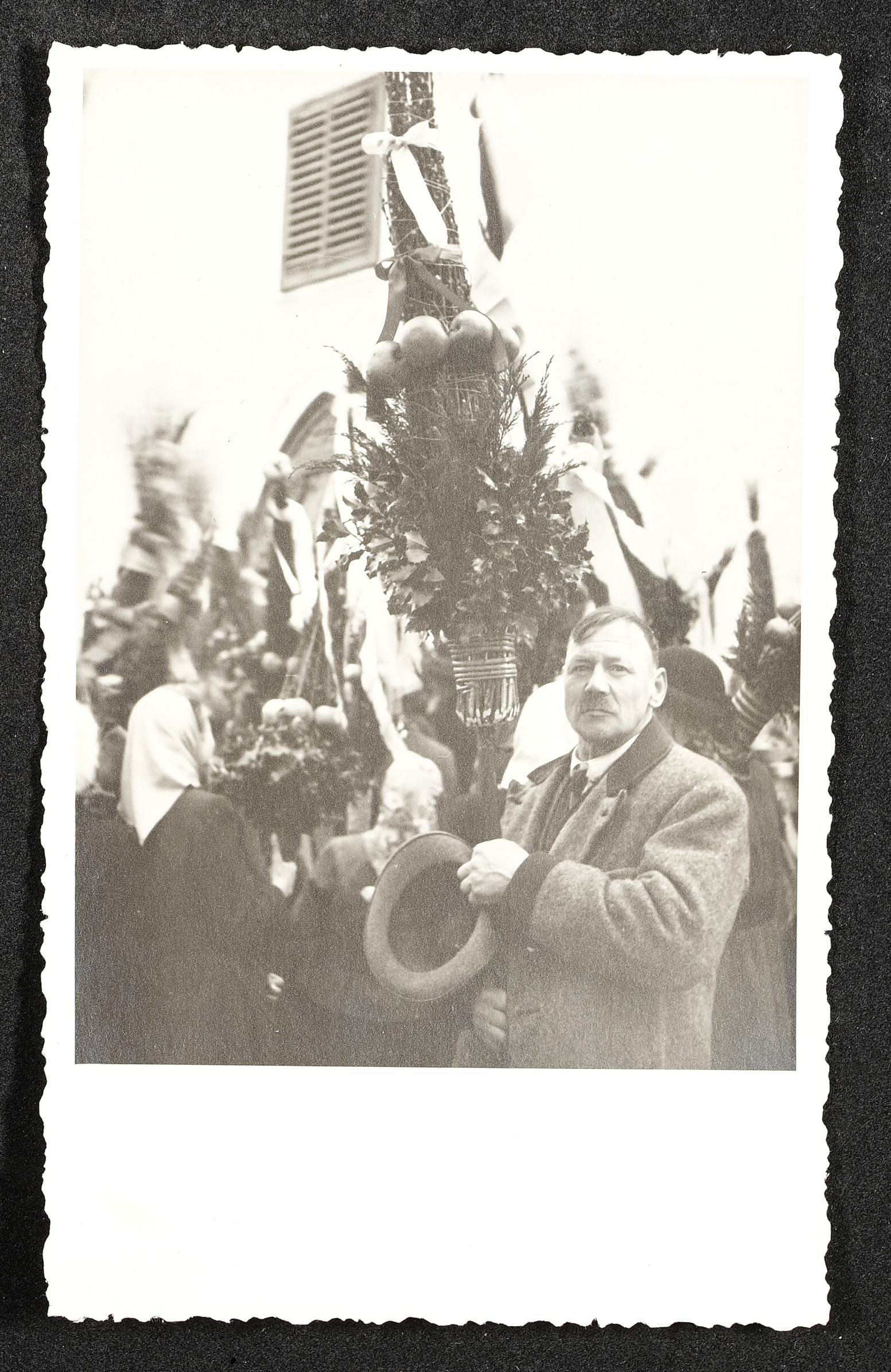 | Beschreibung | Mann mit Palmbuschen bei der Palmweihe in Ternberg am 10. April 1949 |