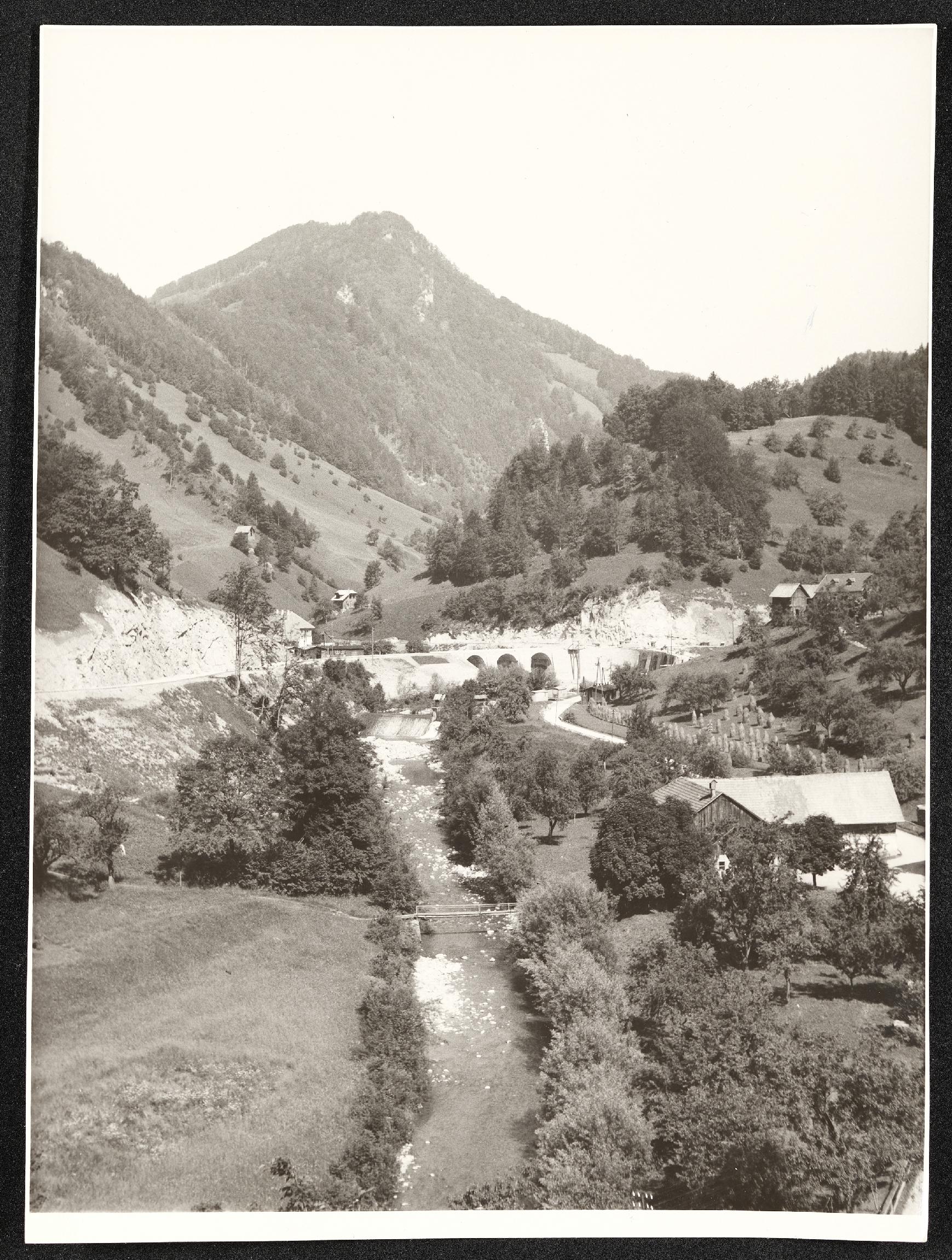 | Beschreibung | Aschafluss mit Wehr, Pechgrabenbrücke, Neustiftbrücke und Stallbau der Salcher Taverne. Aufnahme vom 1. Juni 1949. |