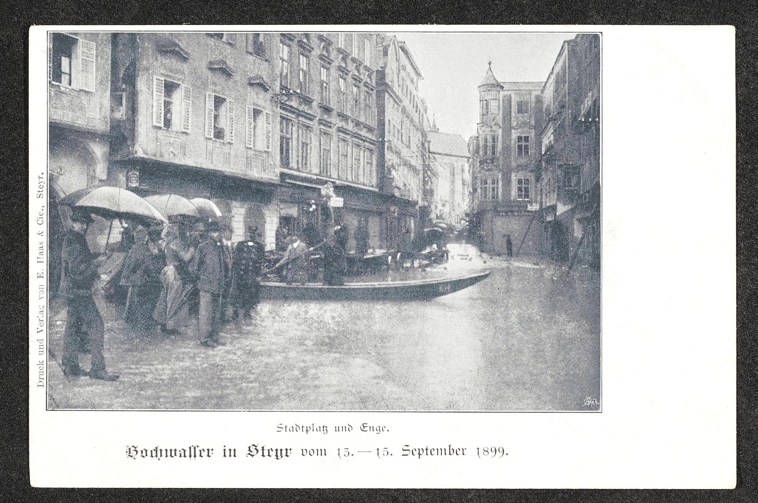 | Beschreibung | Hochwasser am 13. und 14. September 1899 in Steyr, Stadtplatz und Enge |