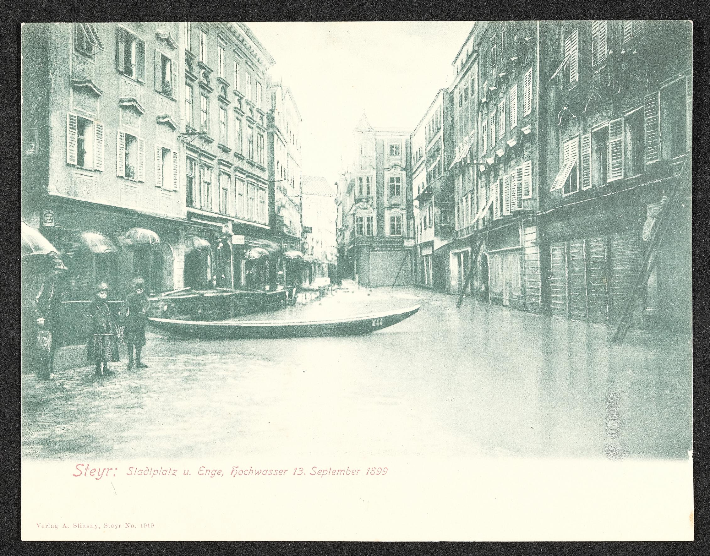 | Beschreibung | Hochwasser am 13. und 14. September 1899 in Steyr, Stadtplatz und Enge |
