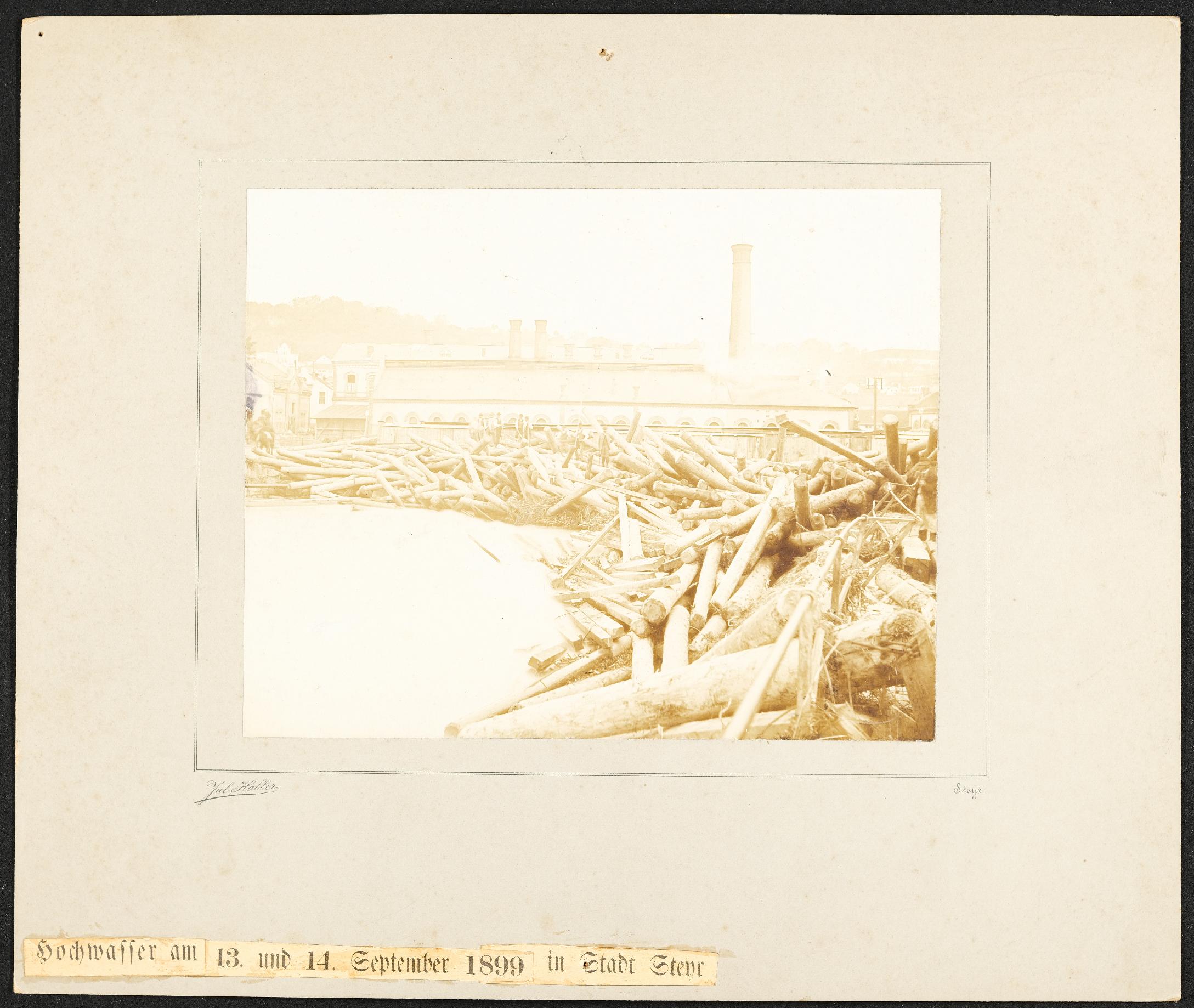 | Beschreibung | Hochwasser am 13. und 14. September 1899 in Steyr beim Objekt 9 der Österreichischen Waffenfabriks-Gesellschaft Steyr am Gsangsteg |