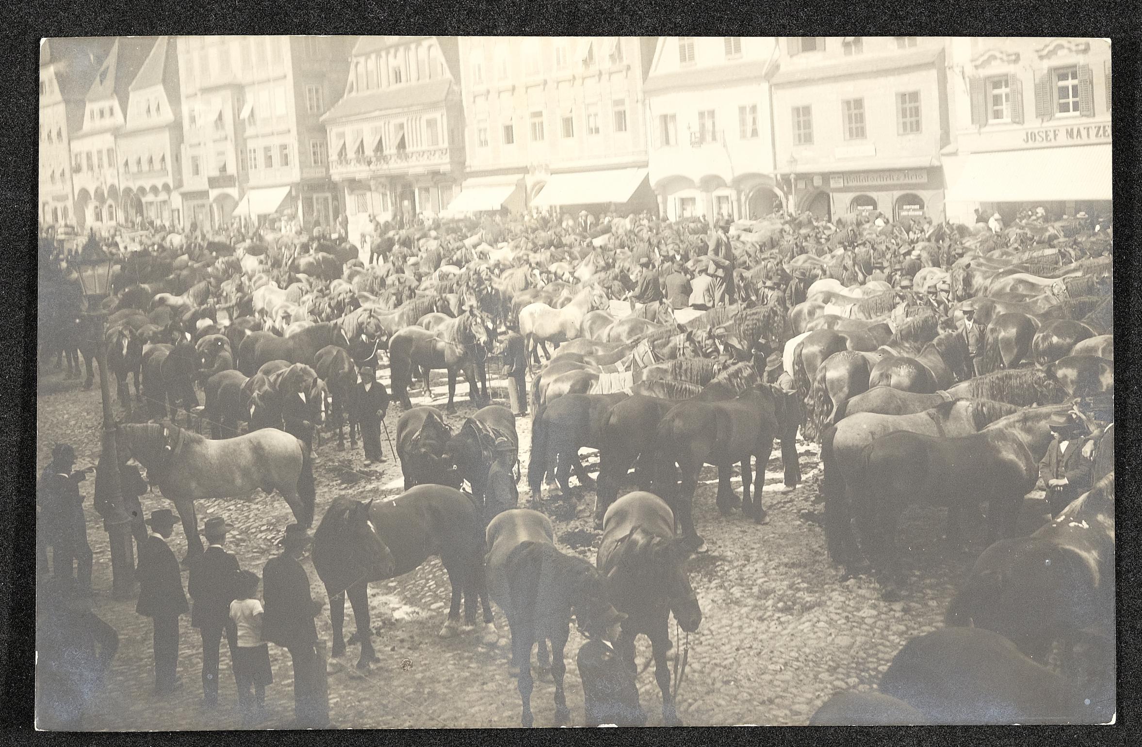 | Beschreibung | Pferdemusterung am Steyrer Stadtplatz für das Militär am 2. August 1914 |