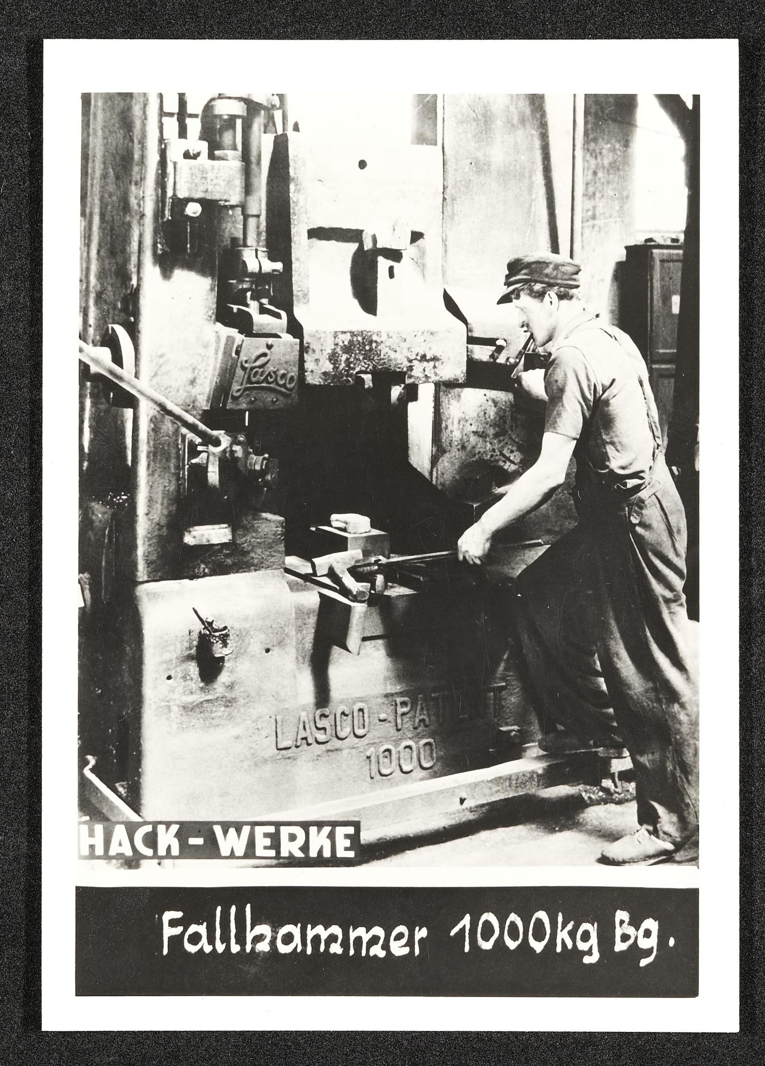 Ansichtskarte Fallhammer mit Arbeiter, Hack Werke