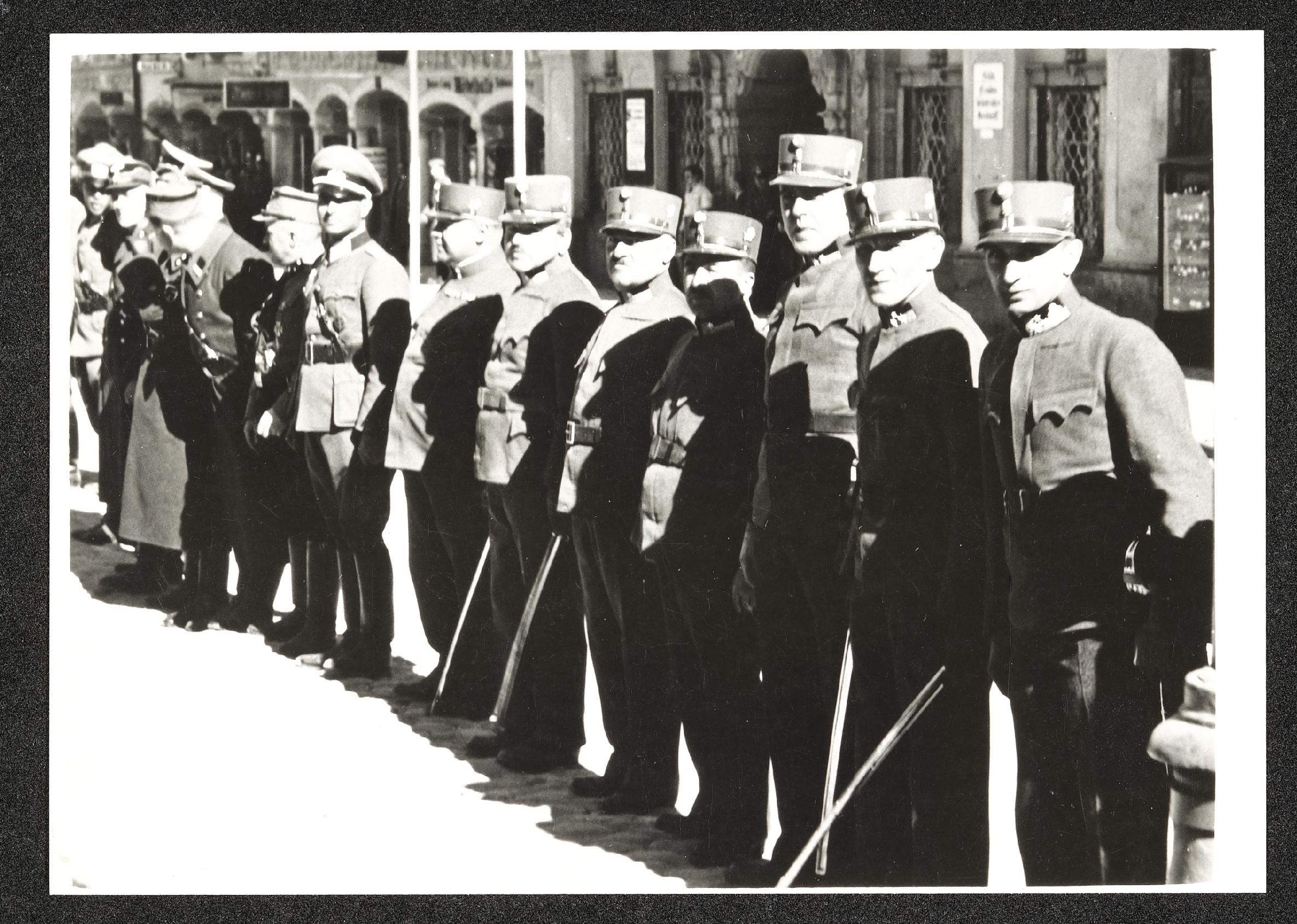 | Beschreibung | Österreichisches Offizierscorps beim Vorbeimarsch der deutschen Truppen in Steyr |
