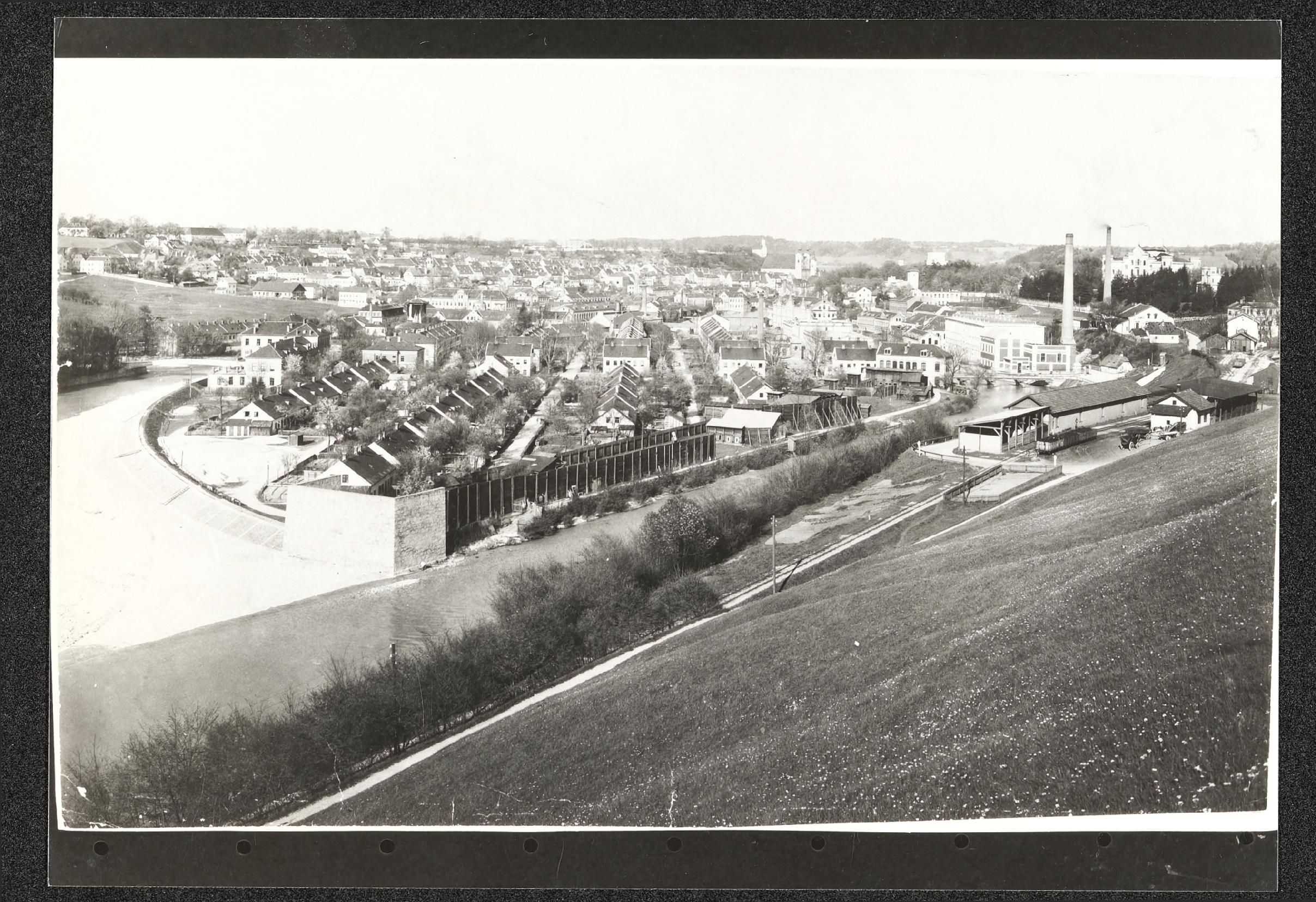 | Beschreibung | Wehrgraben und Stadt Steyr von Christkindl aus gesehen, Kugelfang und Steyrtalbahnhof, Uferverbau nach dem Hochwasser 1899 |